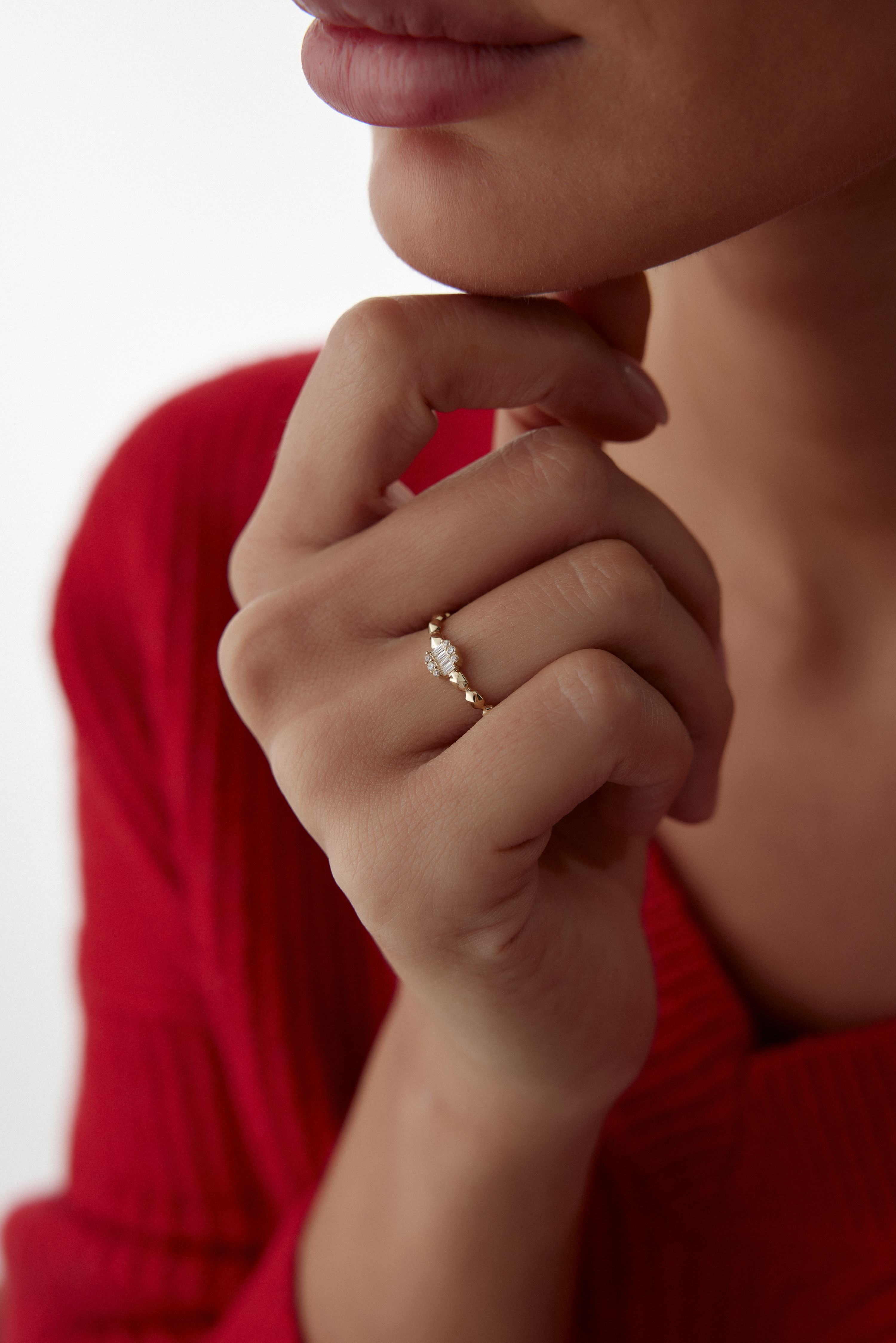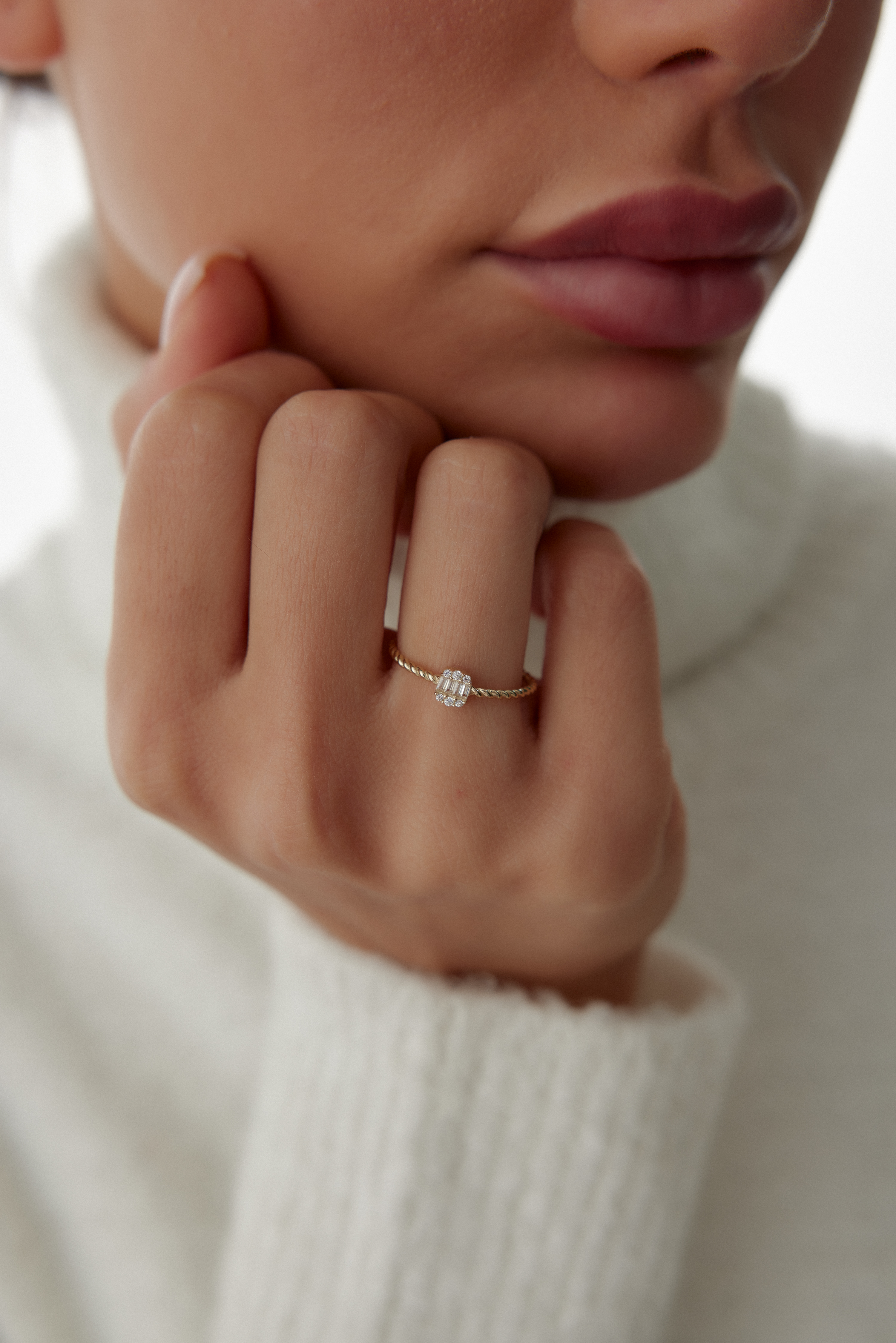 Baget Yuvarlak Tasarım Taşlı Yüzük
