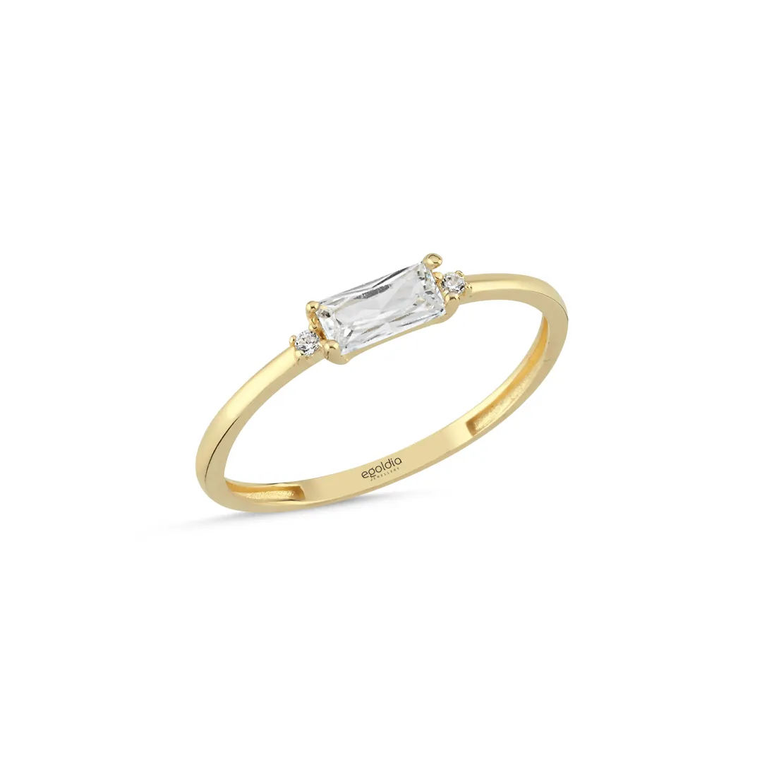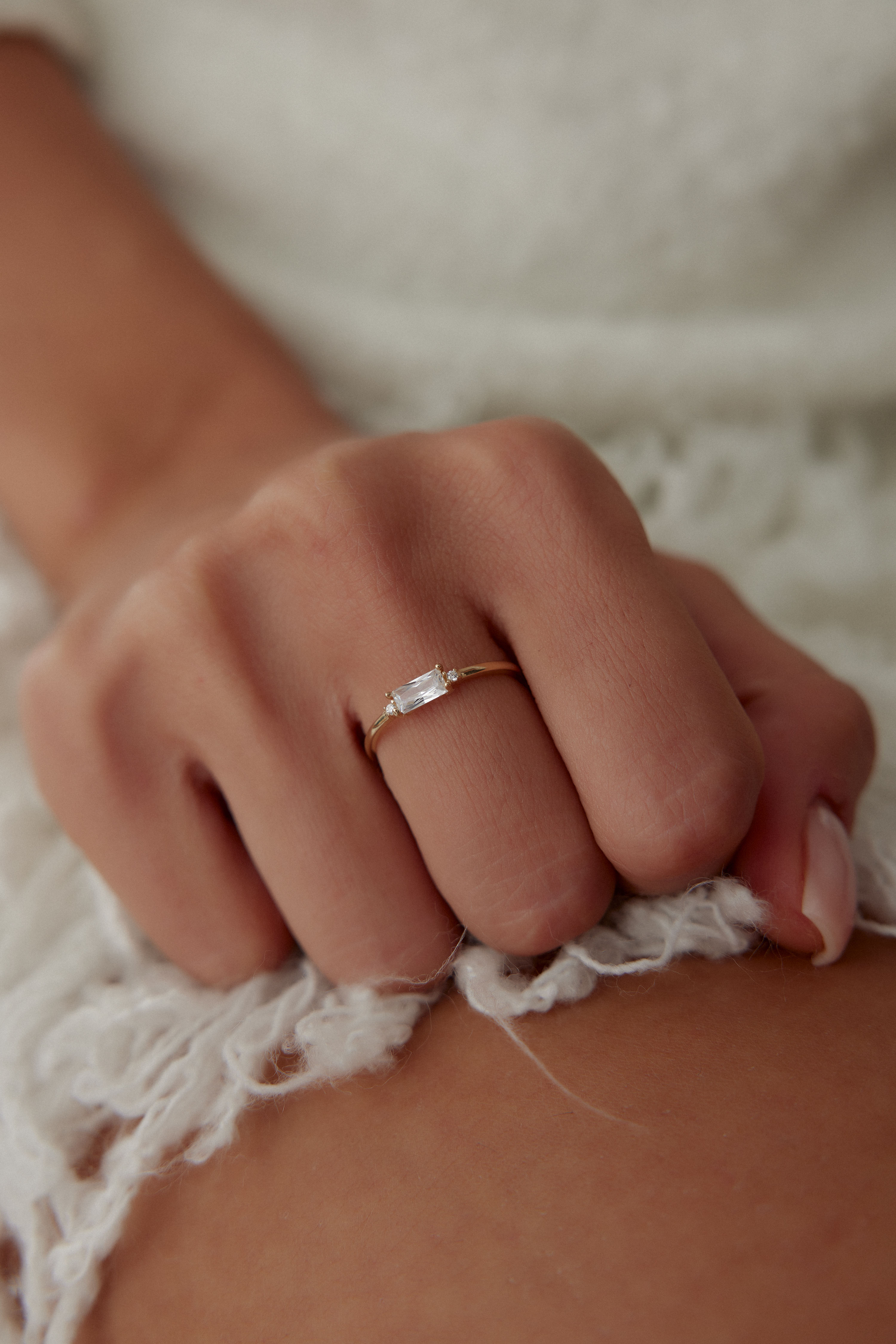 Sekizgen Beyaz Mavi Taşlı Yüzük