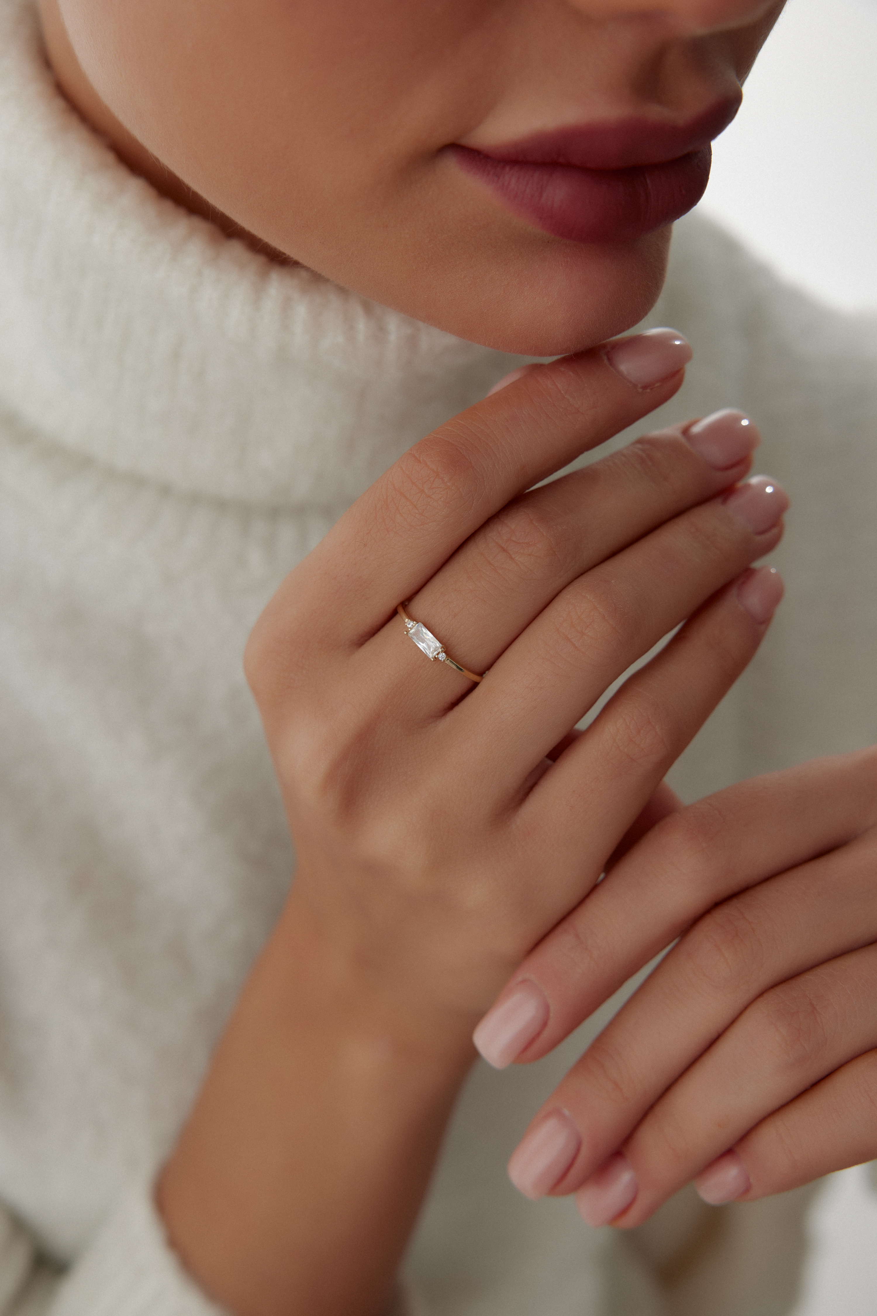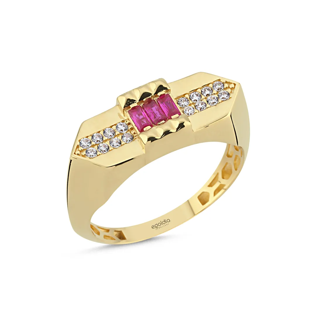 Sekizgen Beyaz Pembe Taşlı Yüzük