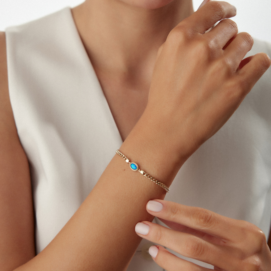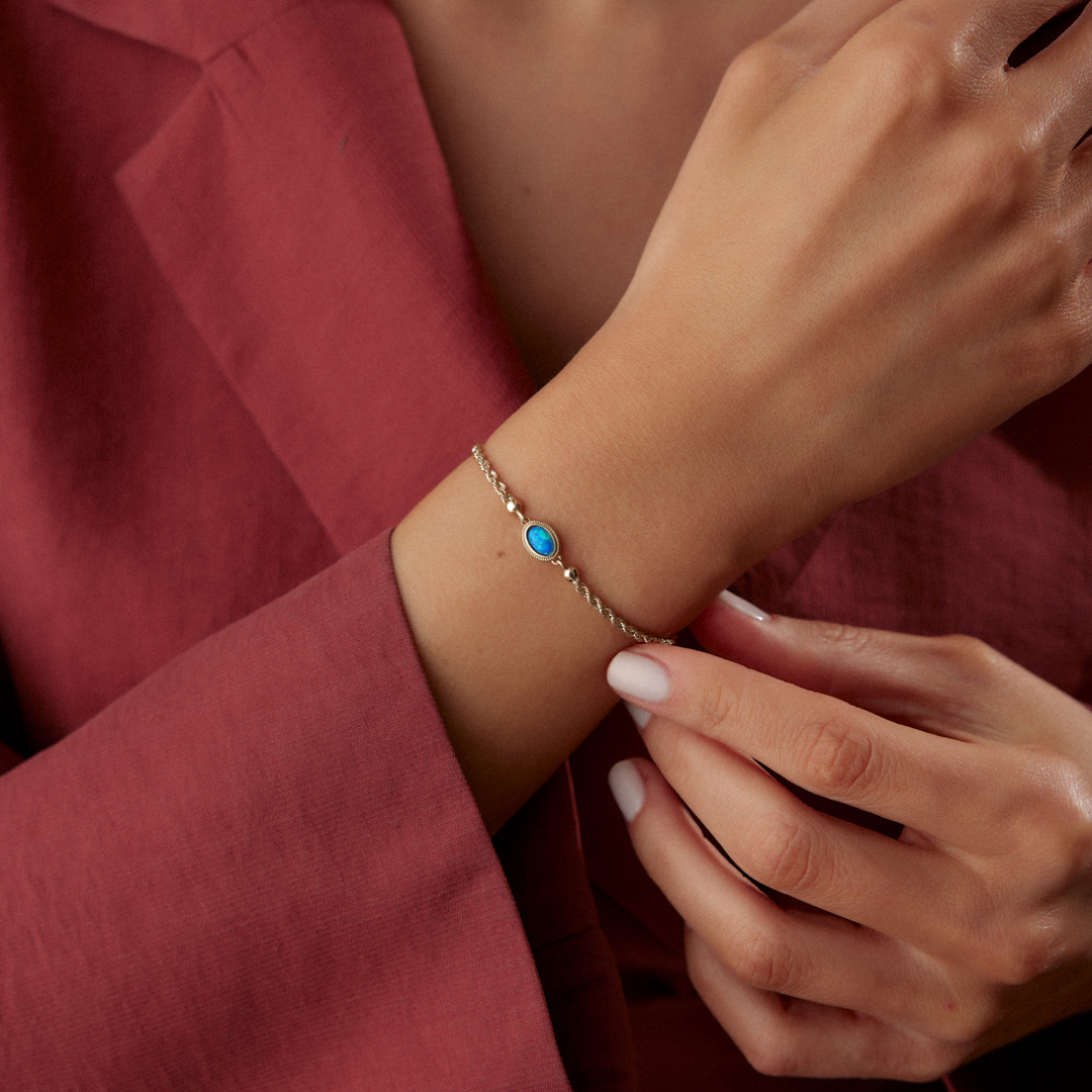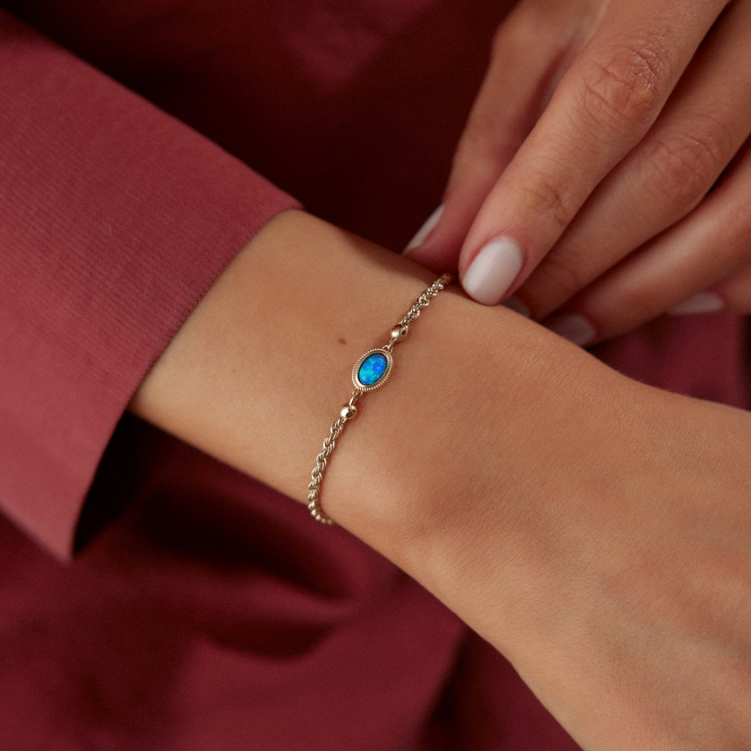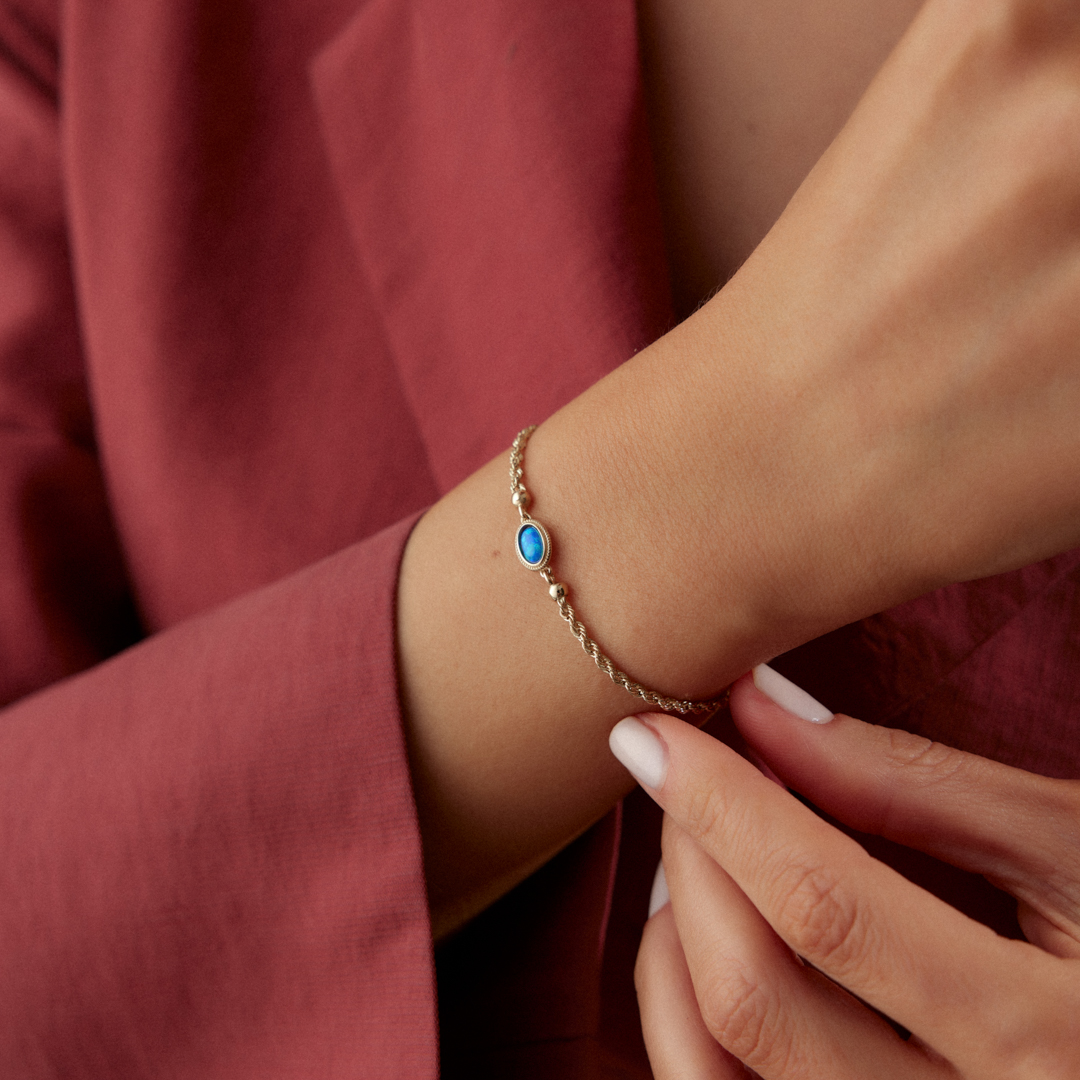 Simli Mavi Taşlı Balıksırtı Bileklik