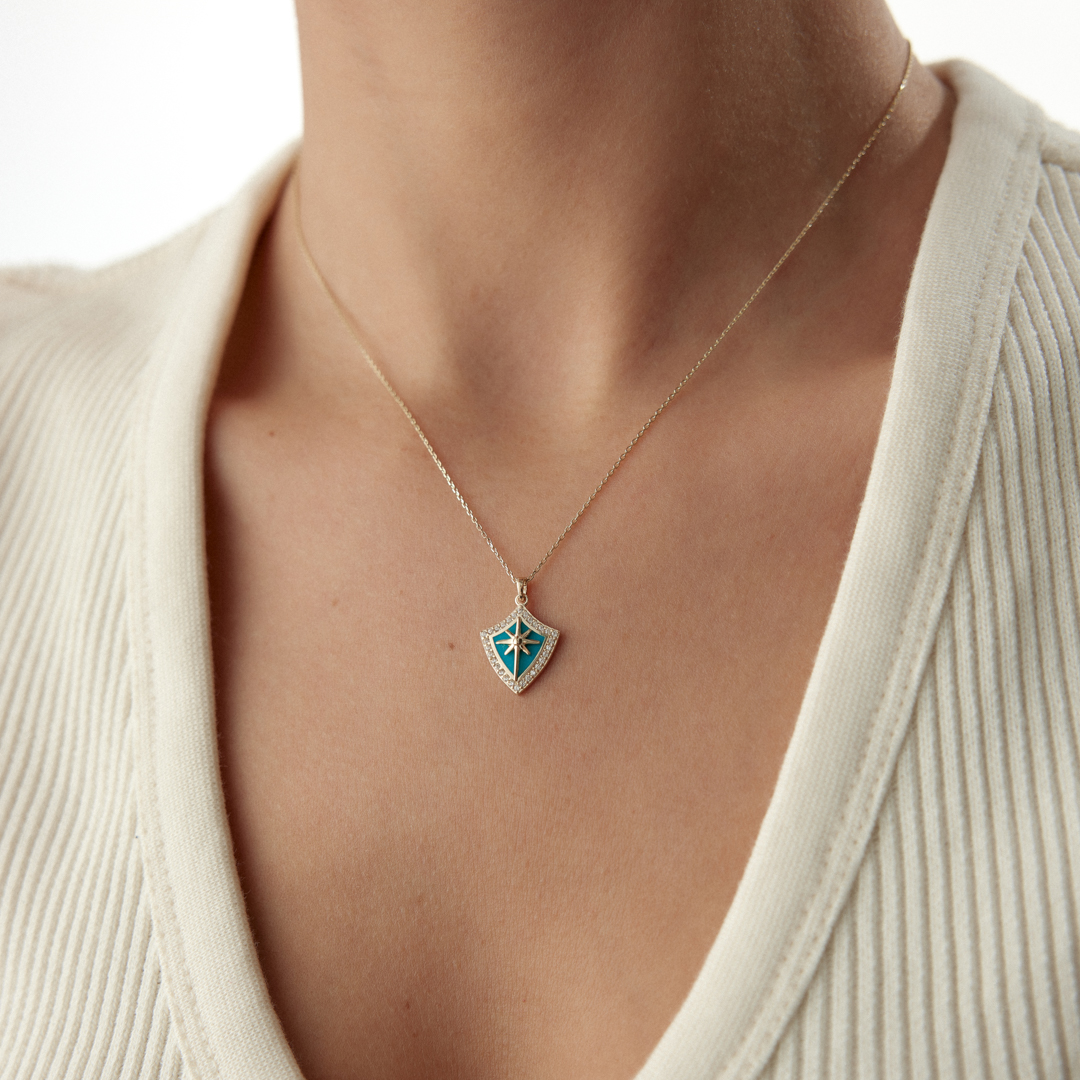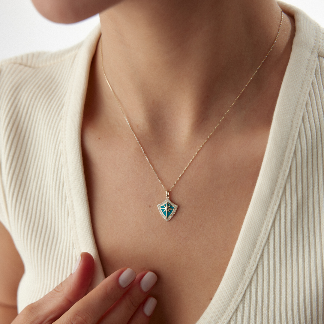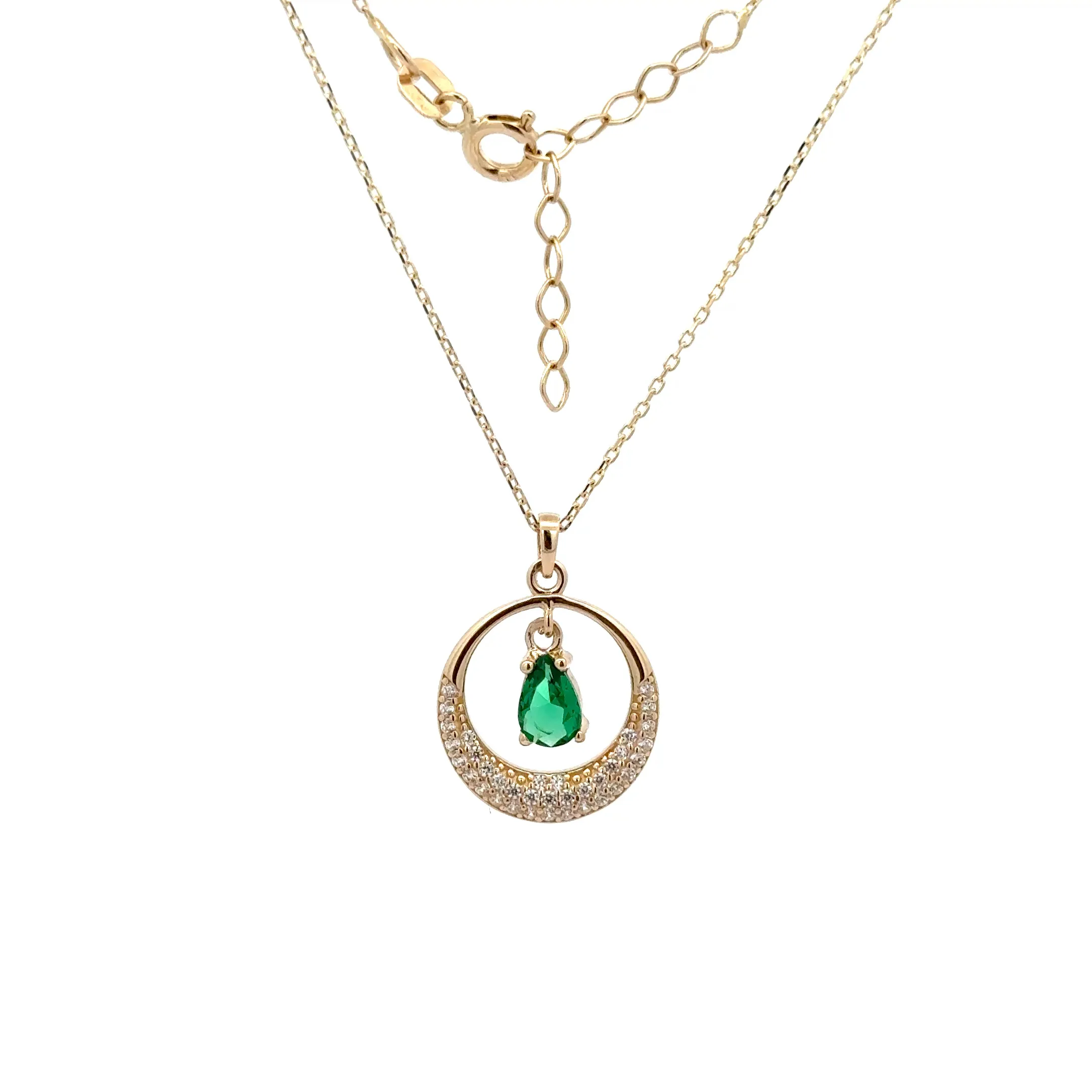 Damla Yeşil Taşlı Hilal Tasarım Kolye