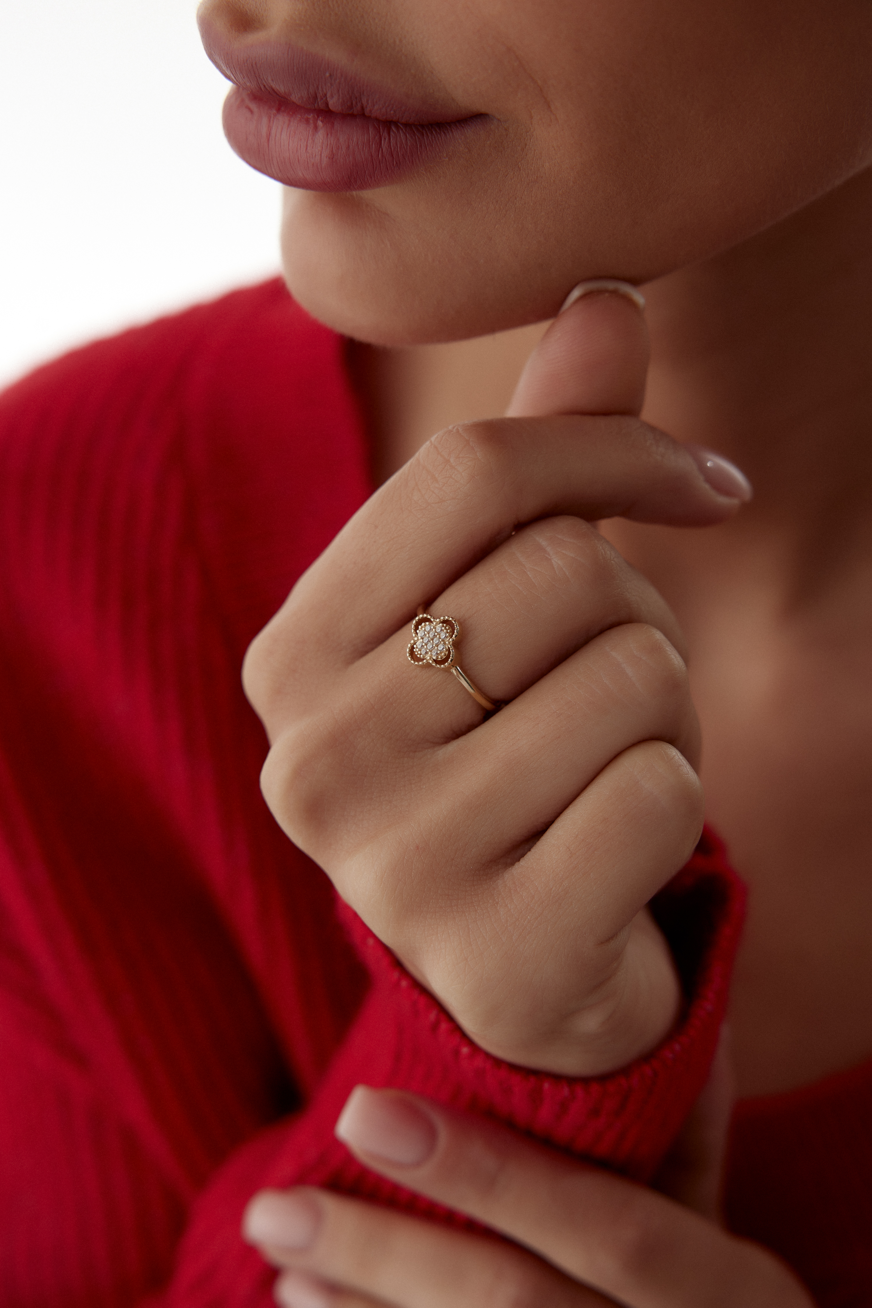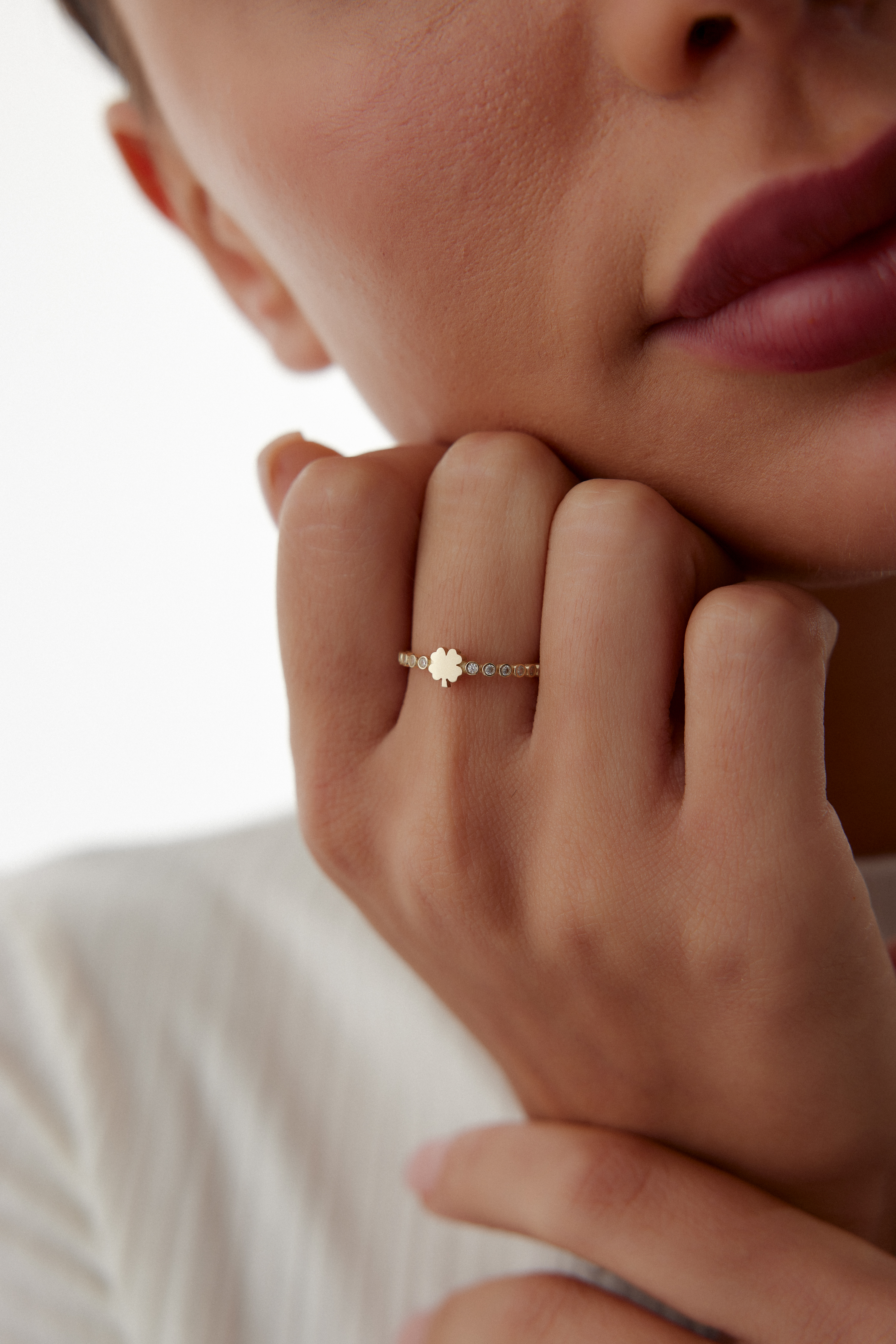 Yonca Taşlı Nokta Tasarım Yüzük