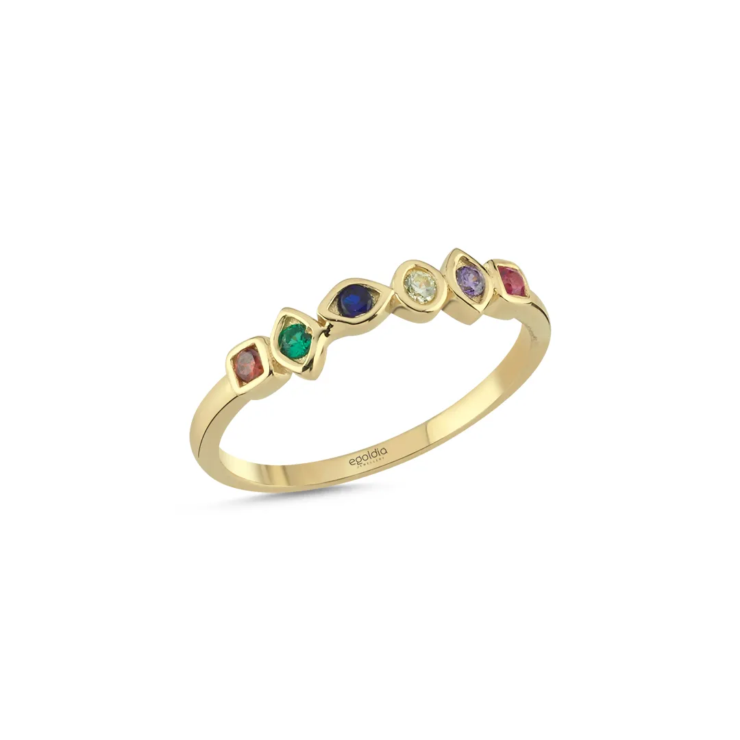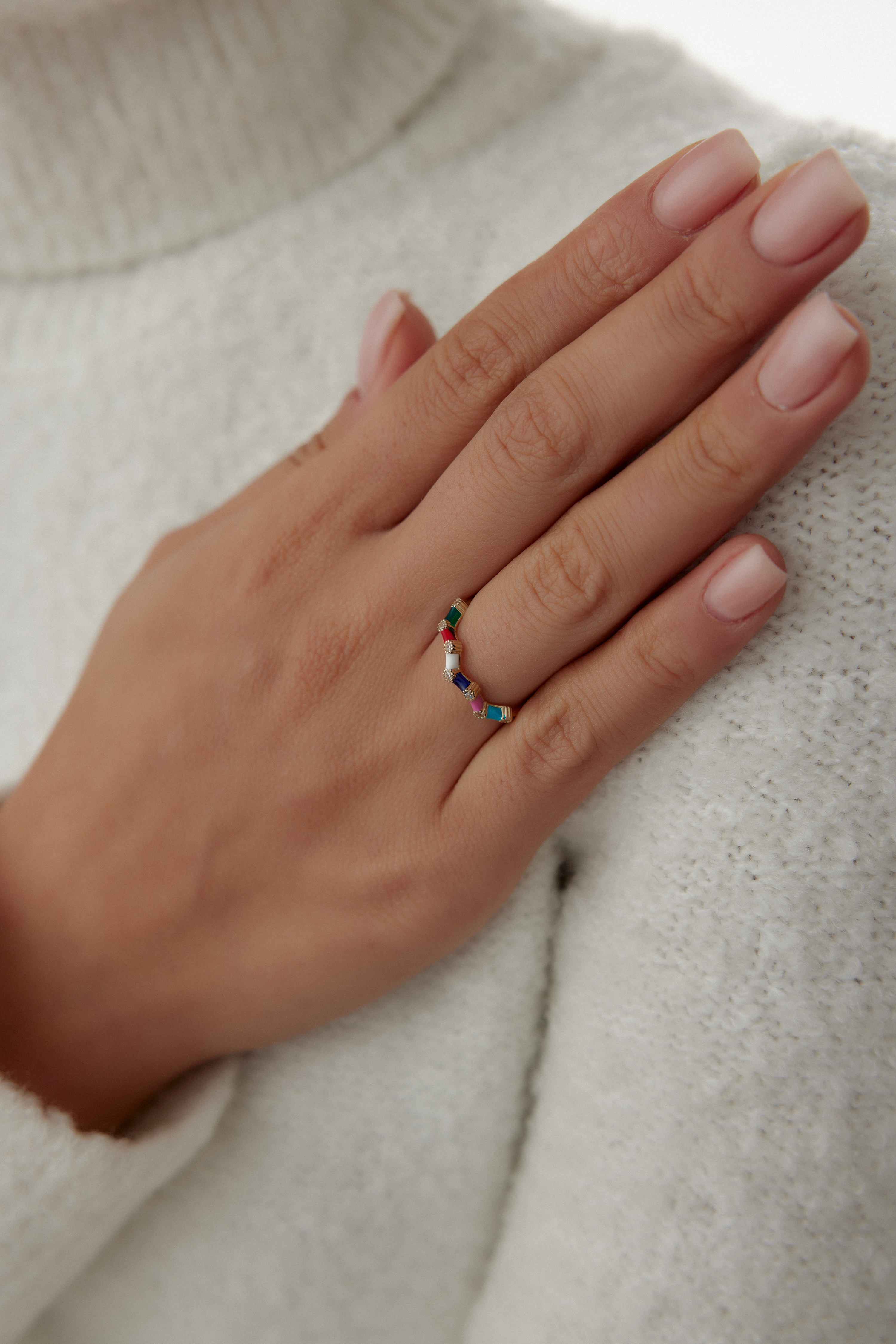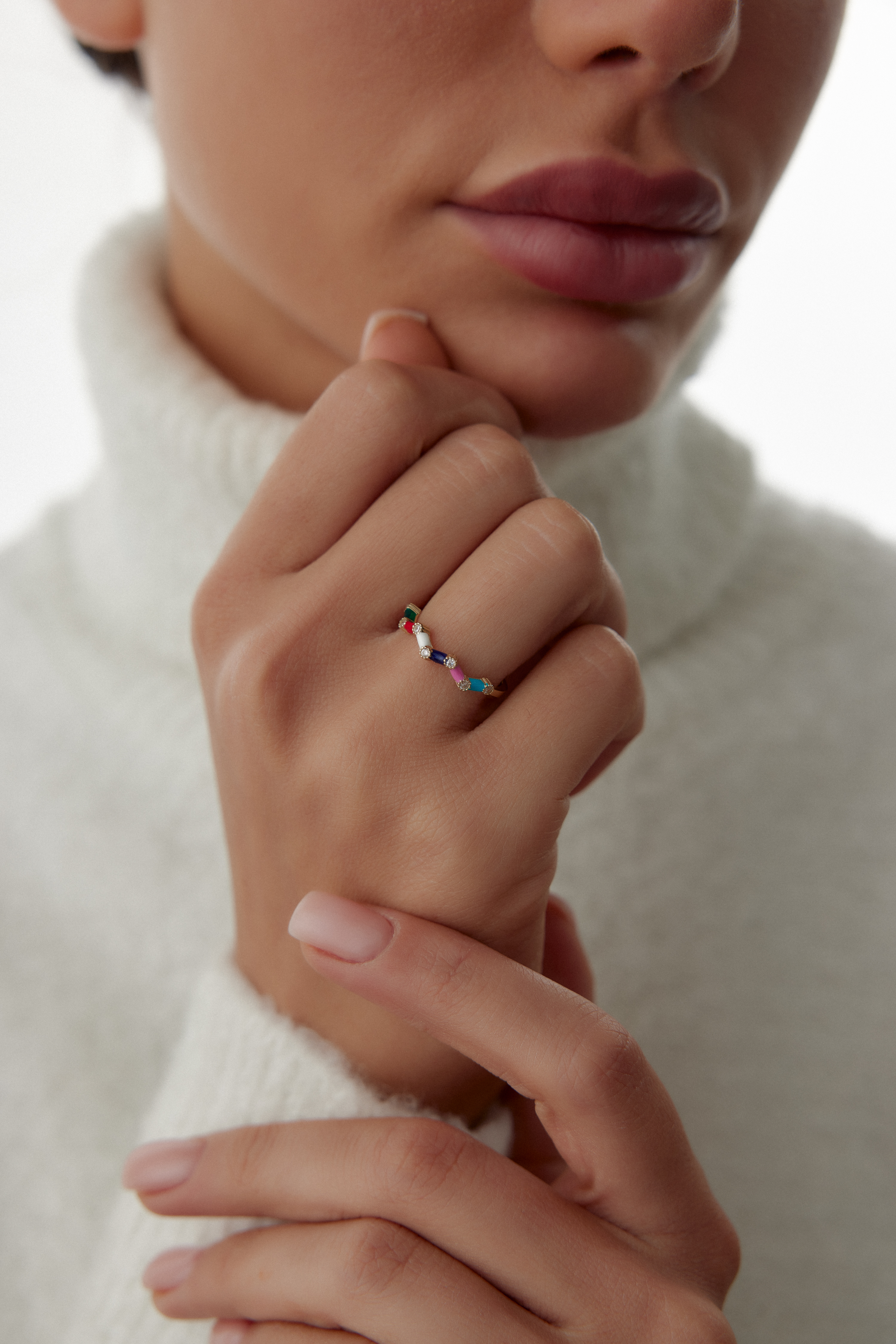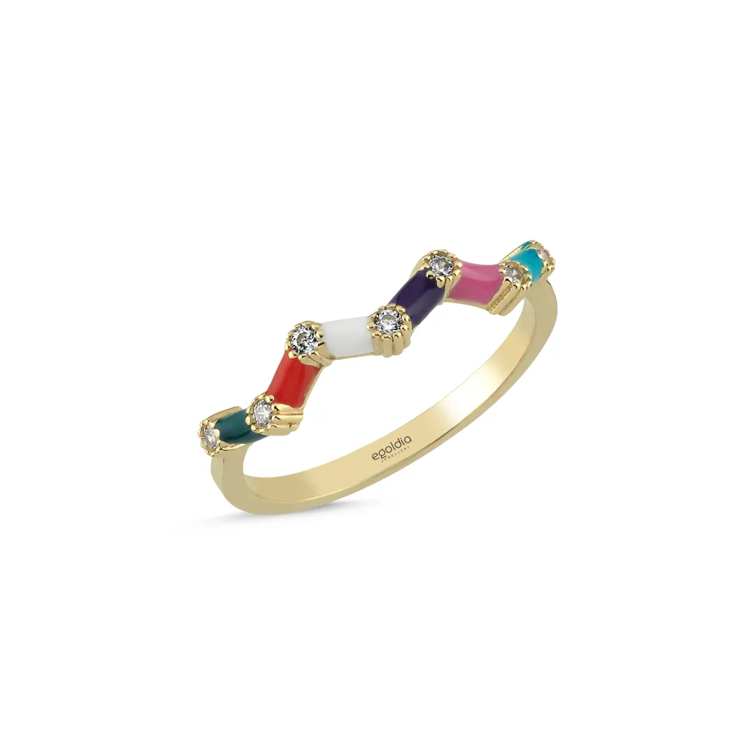 Renkli Çubuk Nokta Taşlı Tasarım Yüzük