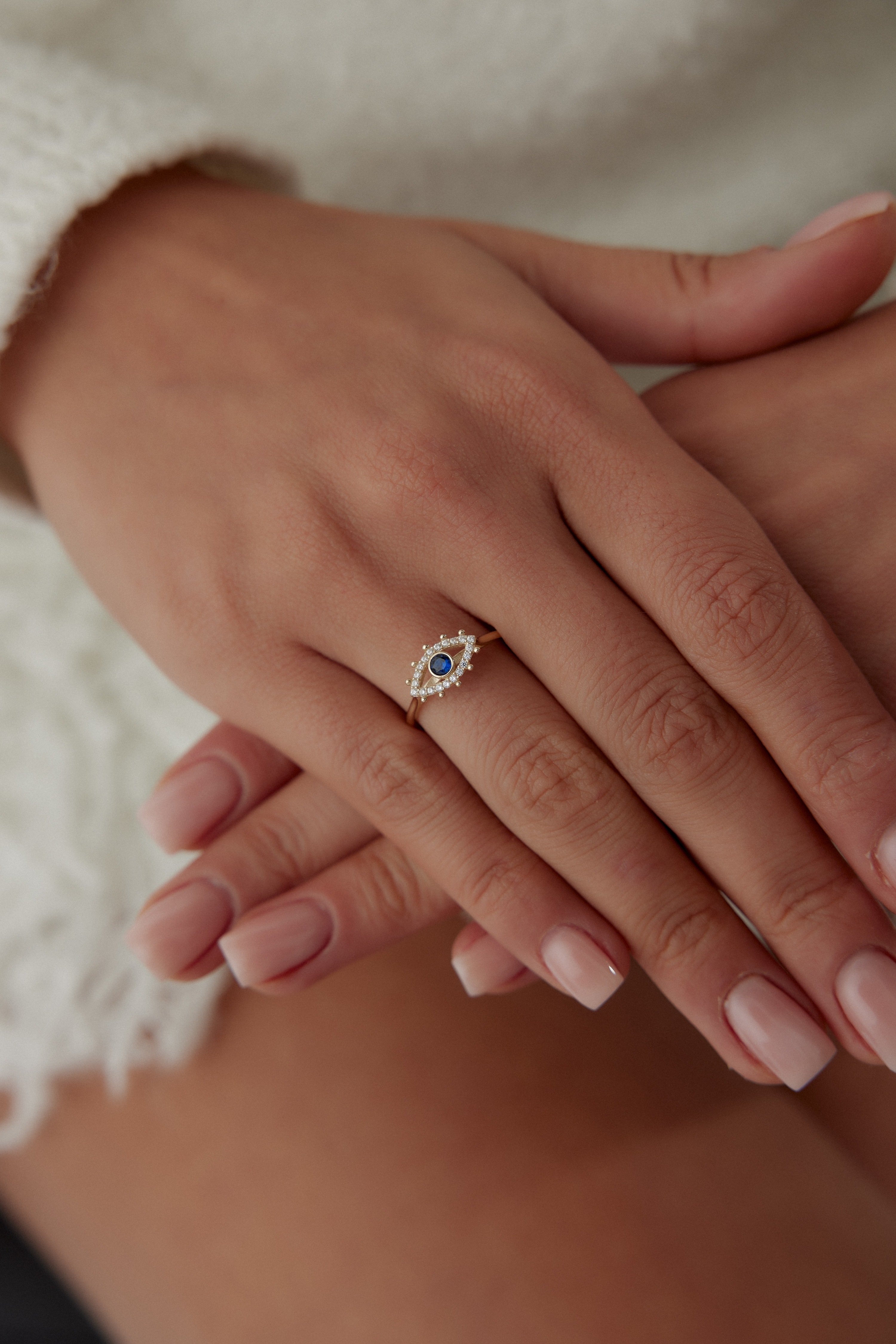 Göz Firuze Mineli Taşlı Burgu Yüzük