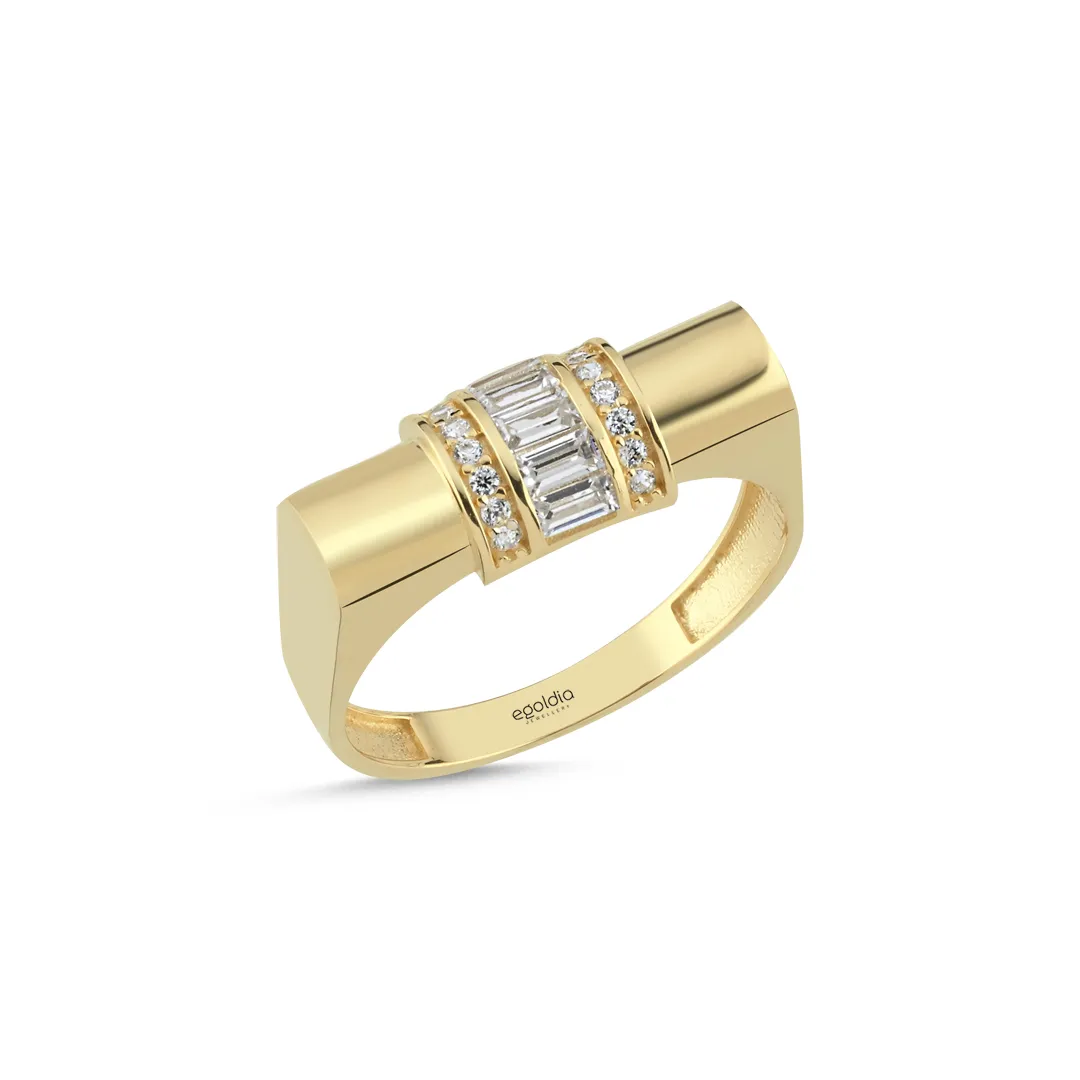 Altıgen Baget Taşlı Yüzük