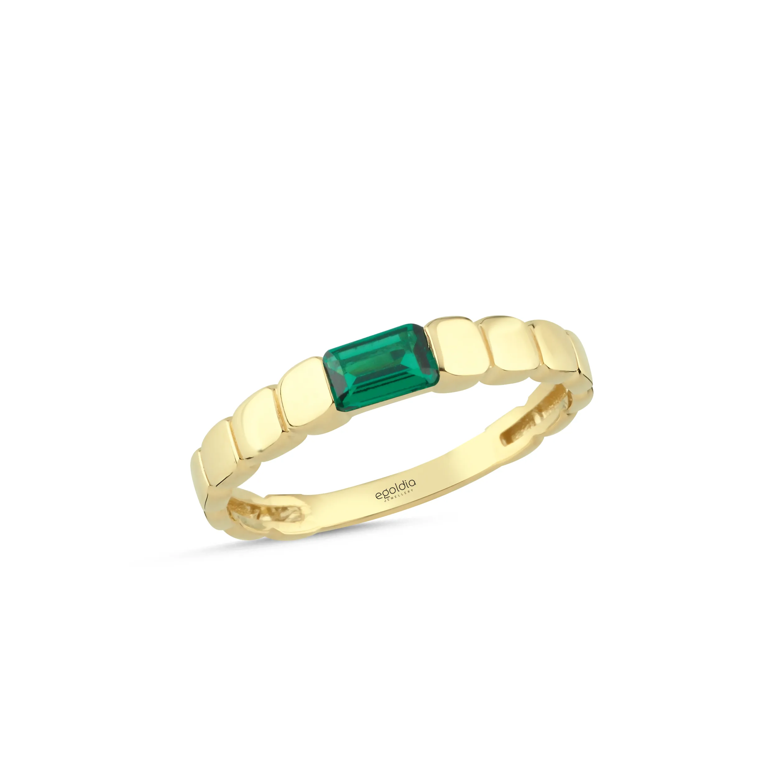 Kare Bakla Tasarım Yeşil Taşlı Yüzük