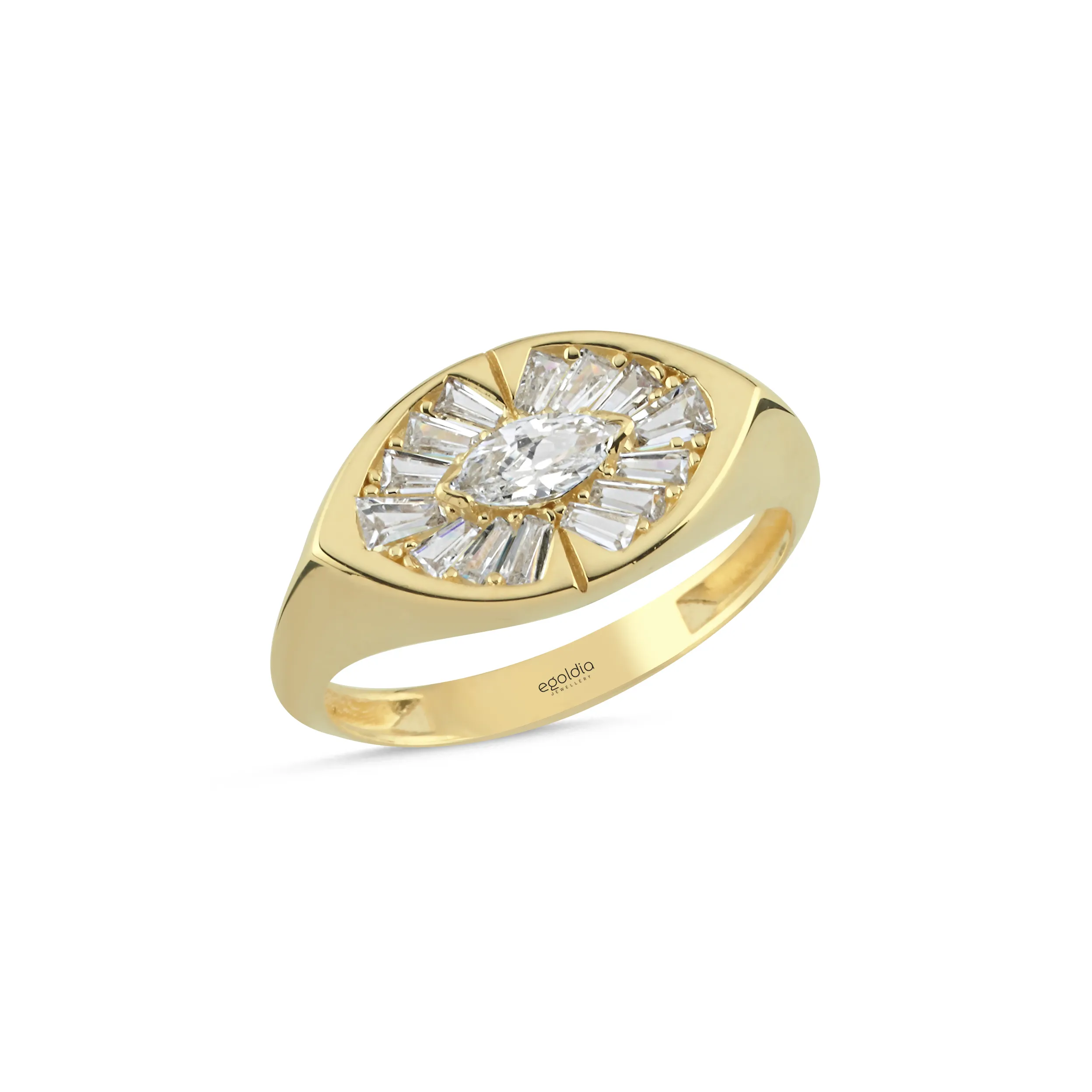 Üçgen Prizma Tasarım Beyaz Ve Baget Taşlı Yüzük