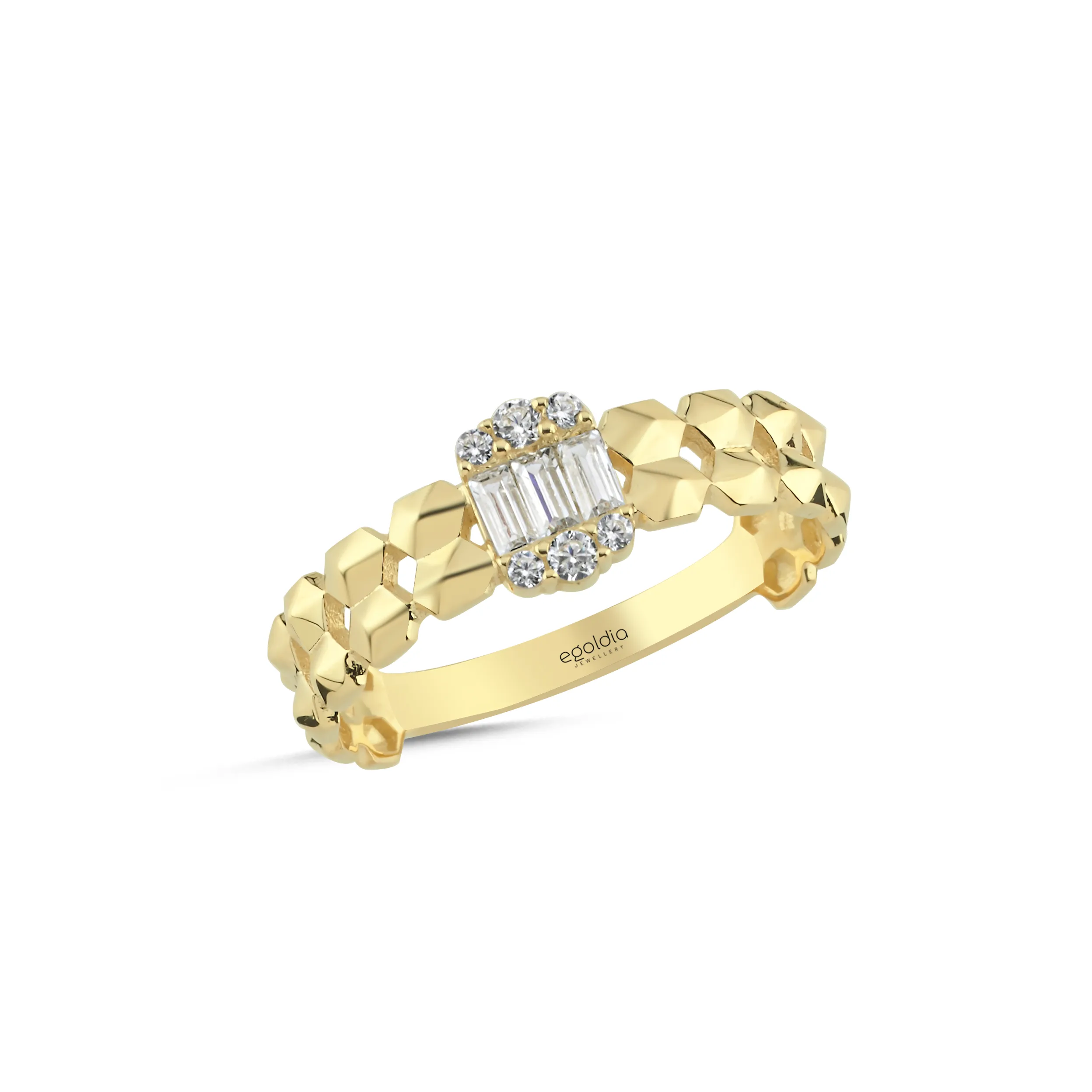 Baget Taşlı Sıralı Prizma Tasarım Yüzük