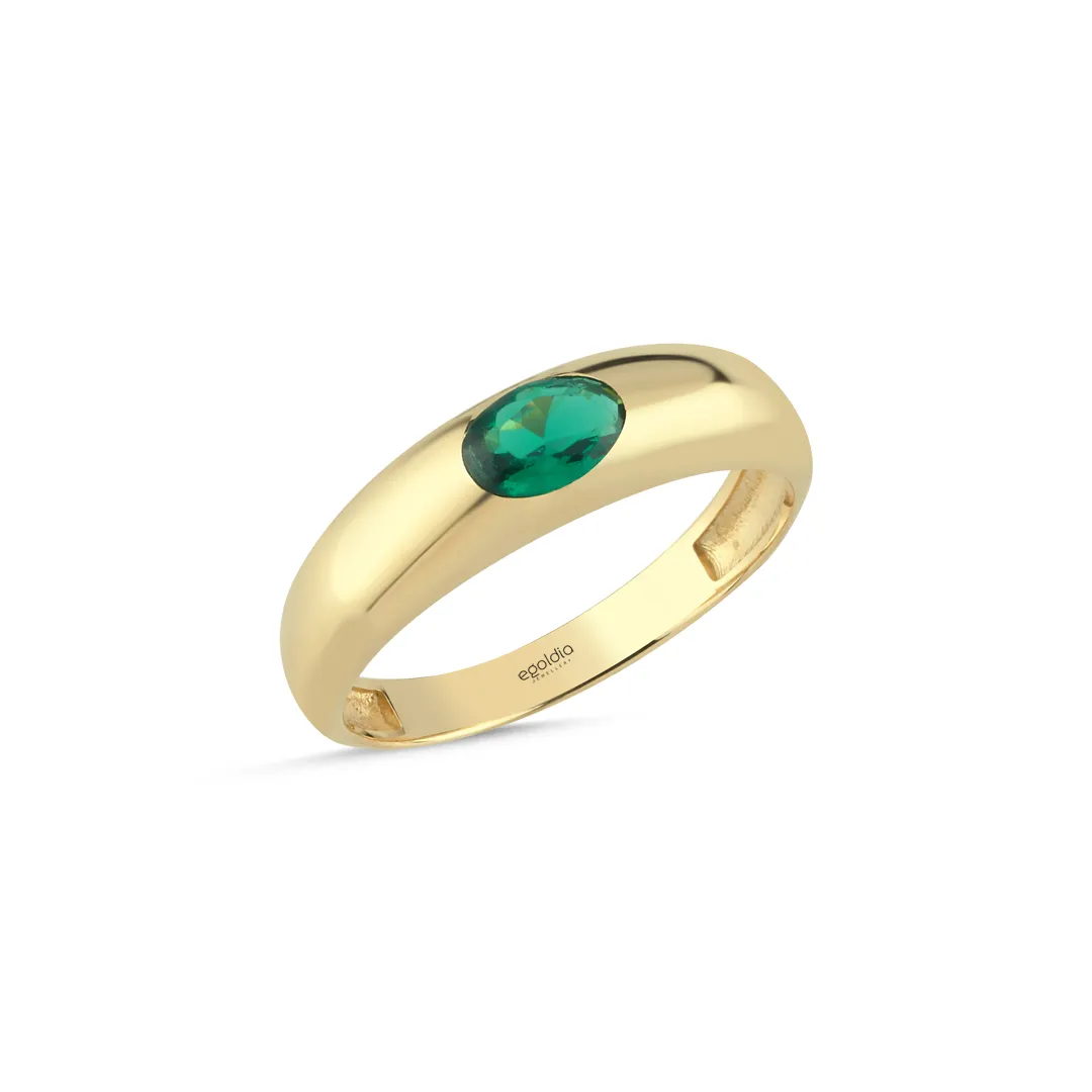 Yeşil Taşlı Yassı Tasarım Yüzük
