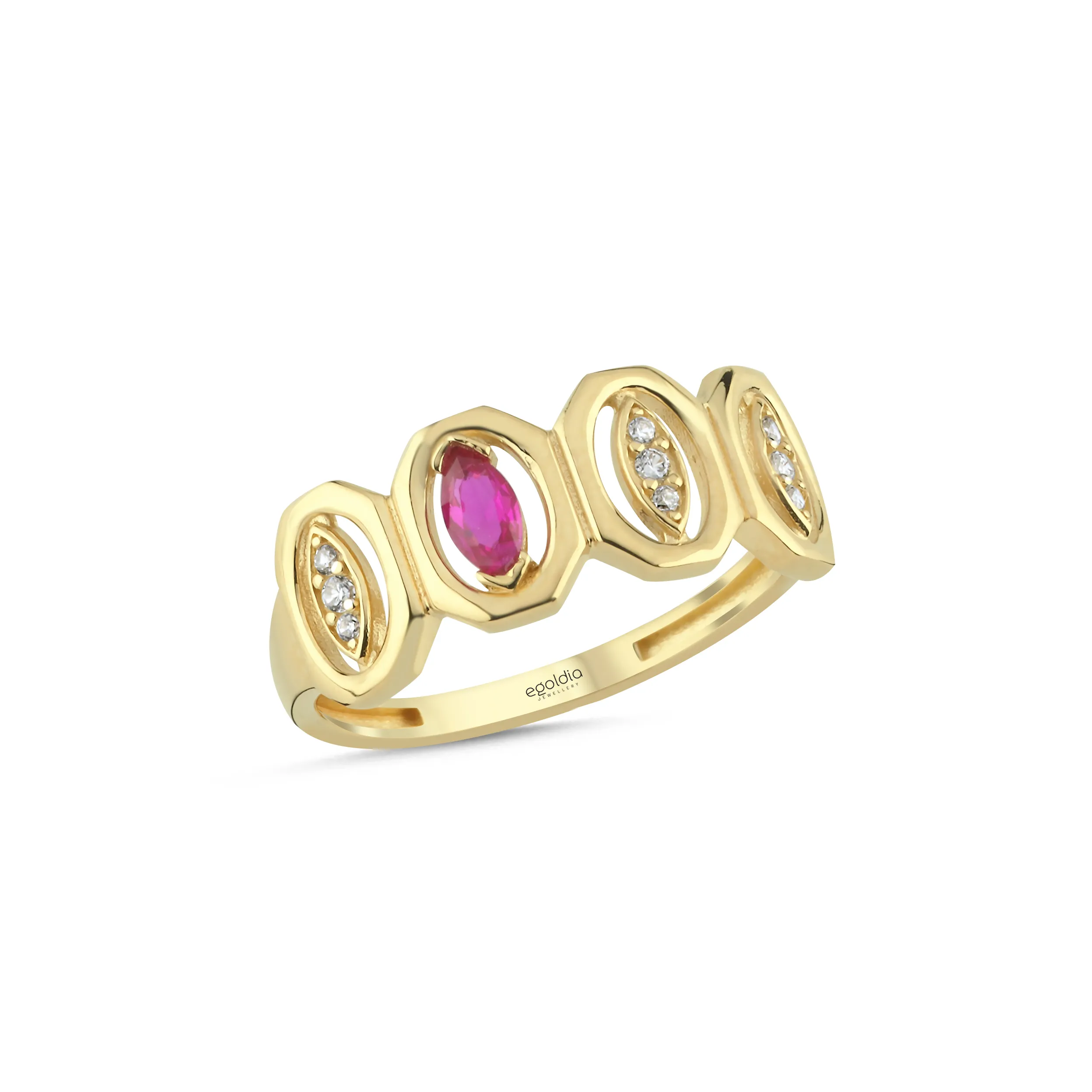 Altıgen Tasarım Taşlı Yüzük