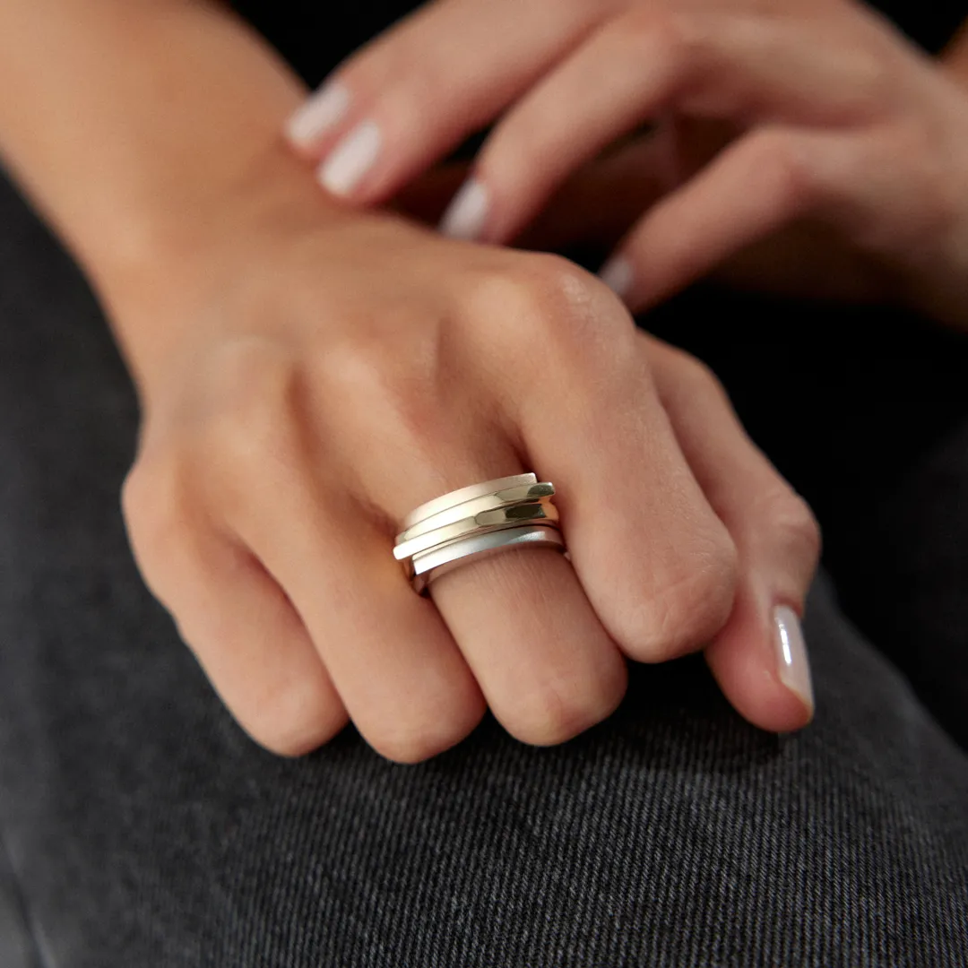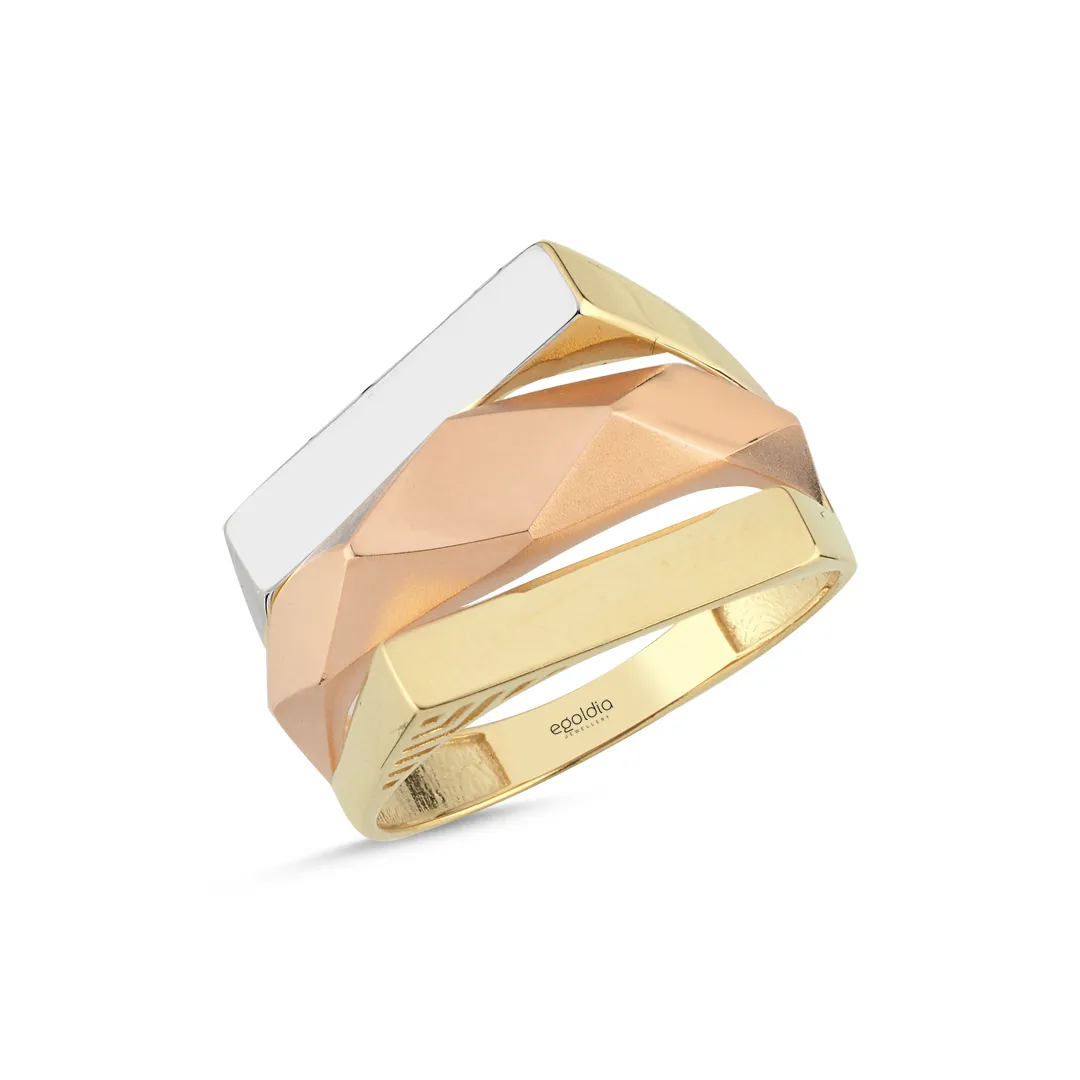 Üç Renk Yatay Geometrik Tasarım Yüzük