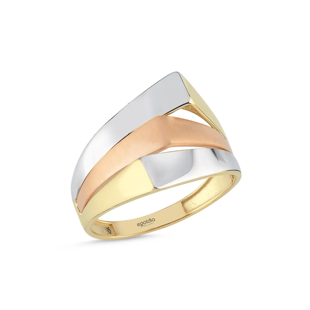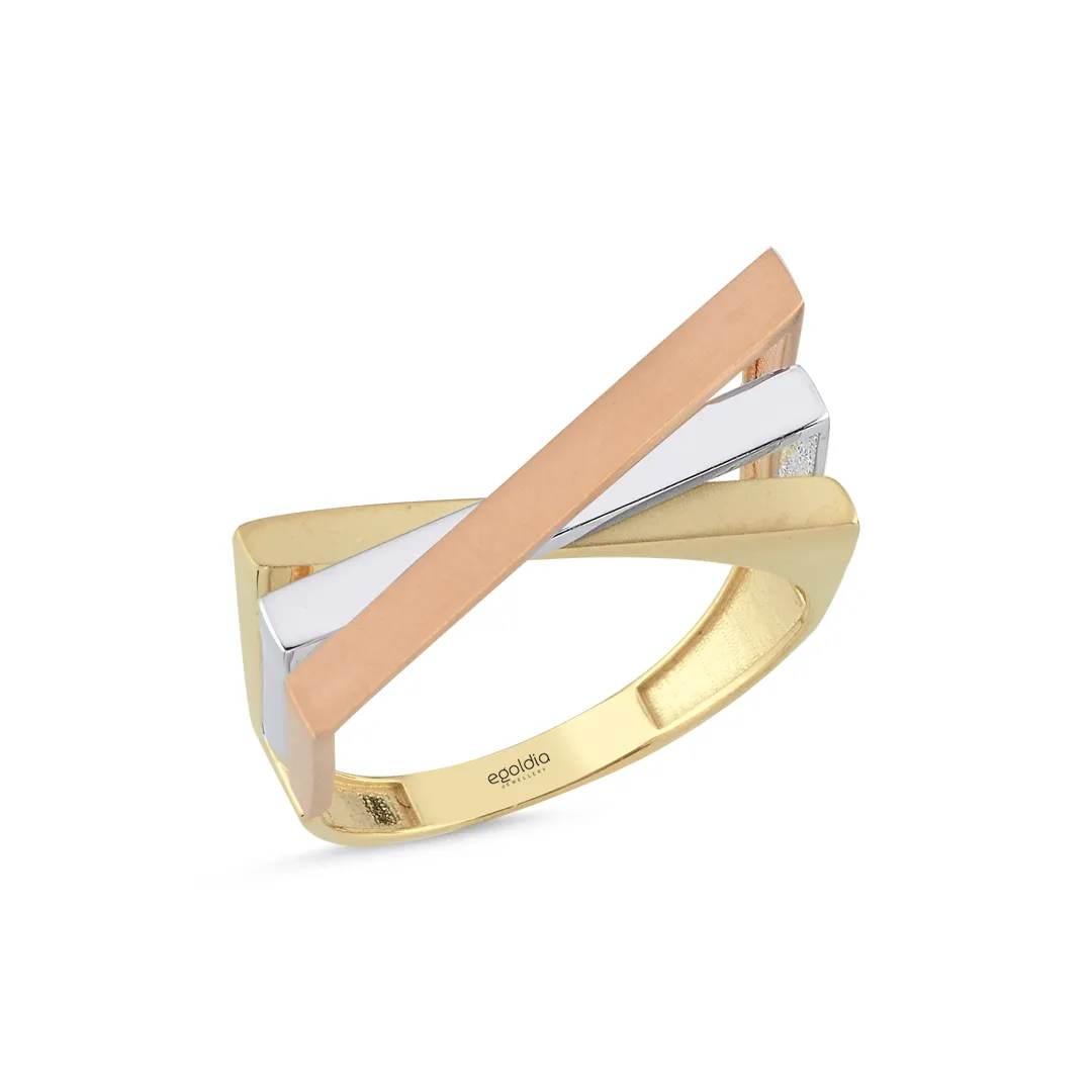 Üç Renk Yatay Çarpı Tasarım Yüzük