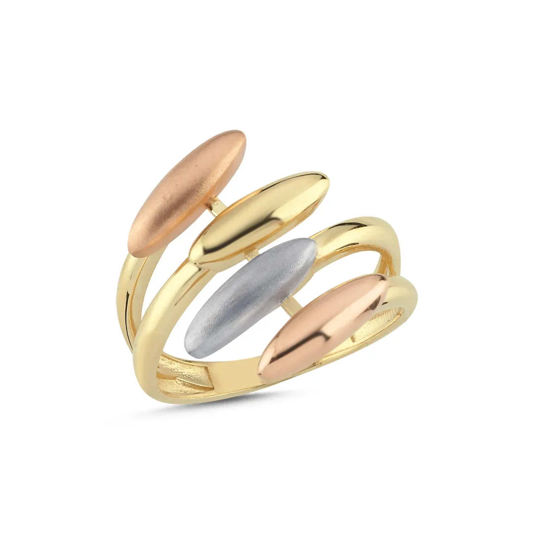 Üç Renk Dörtlü Oval Tasarım Yüzük