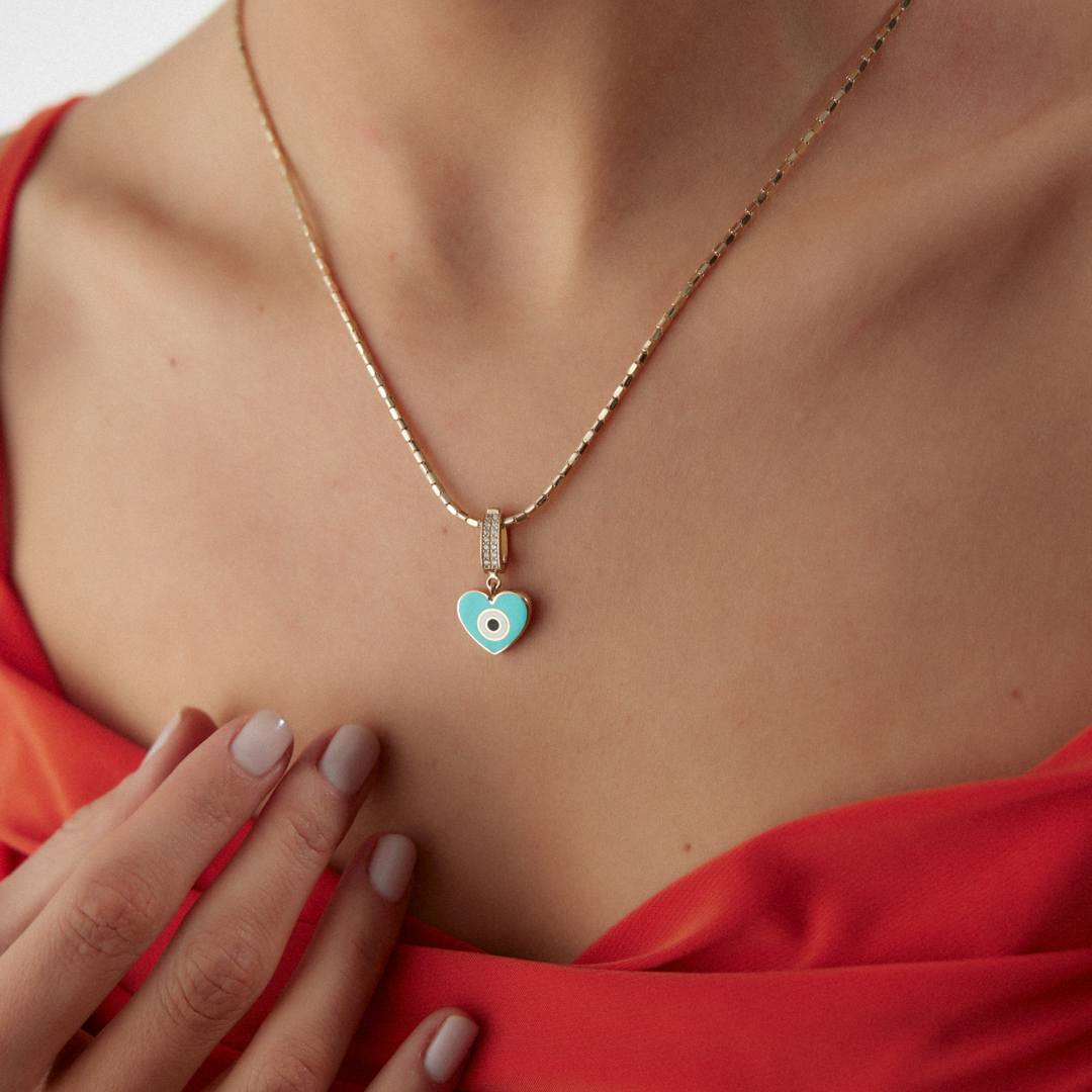 Kalp Göz Turkuaz Mineli Charm Kolye Ucu
