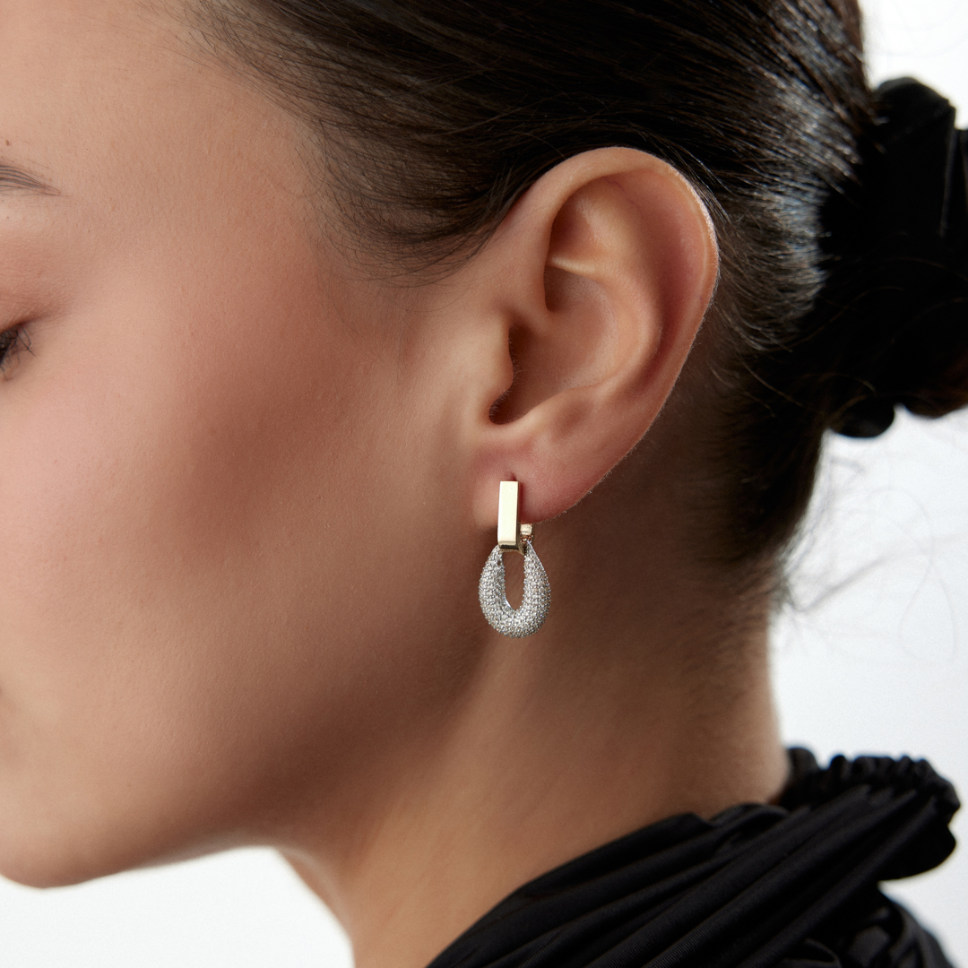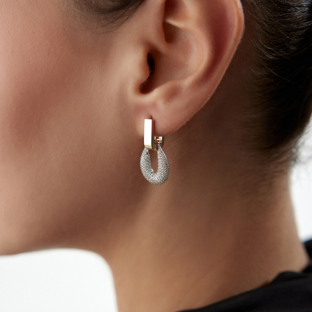 Üçgen Tasarım Taşlı Sallantı Küpe