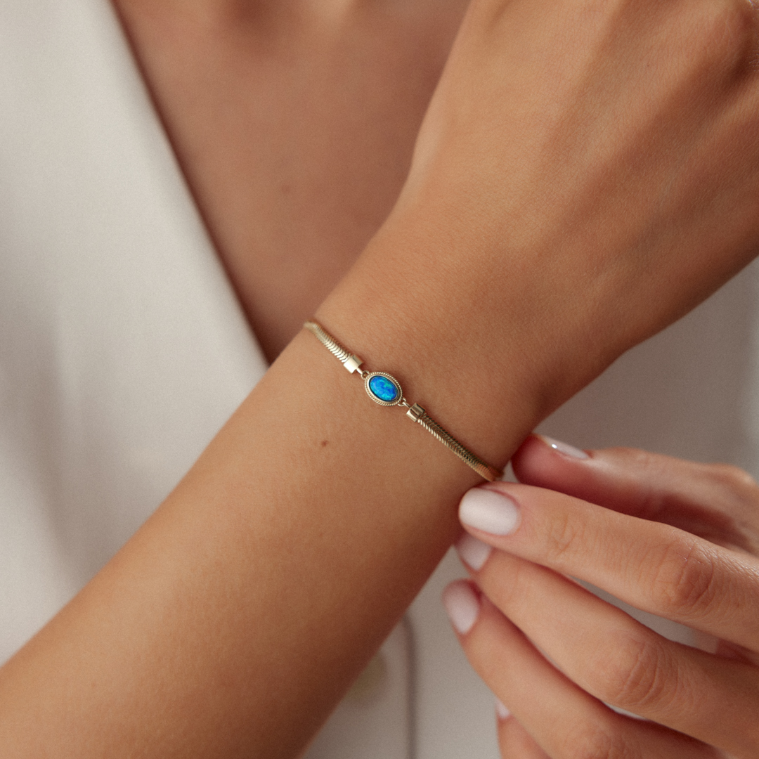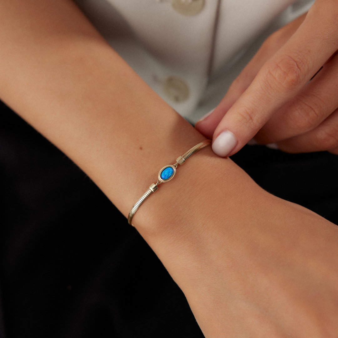 Simli Mavi Taşlı Balıksırtı Bileklik