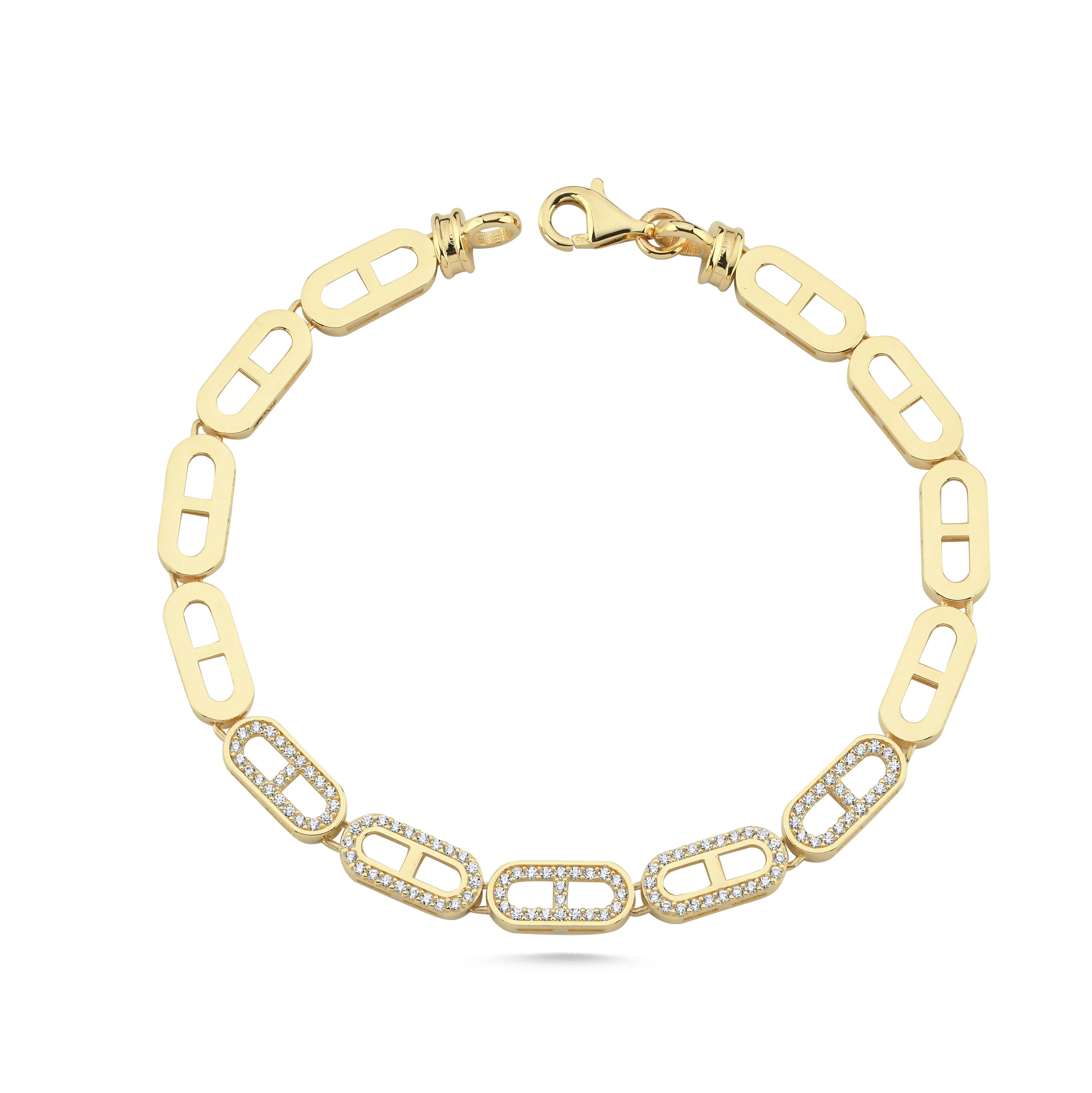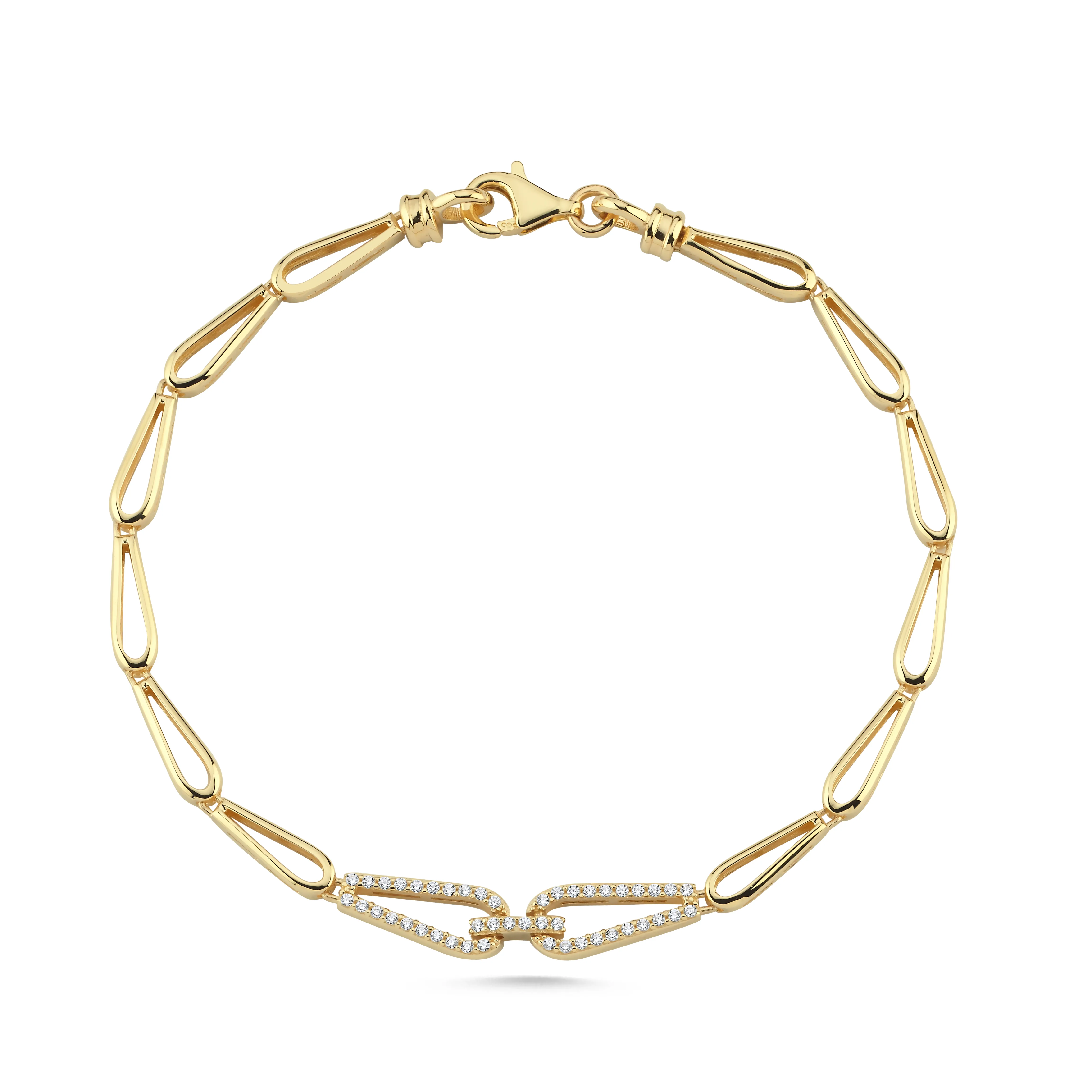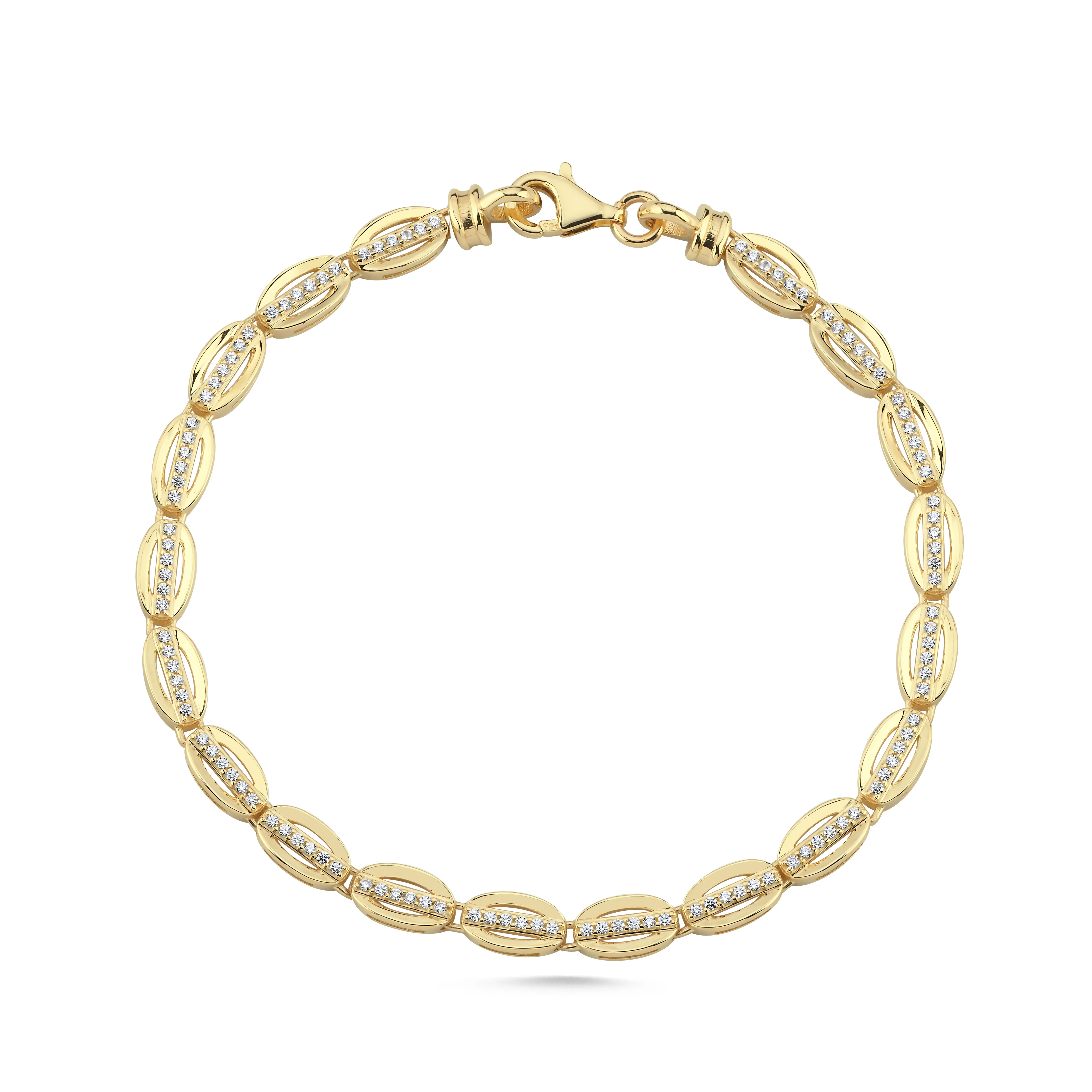 Oval Tasarım Orta Çizgi Taşlı Bileklik