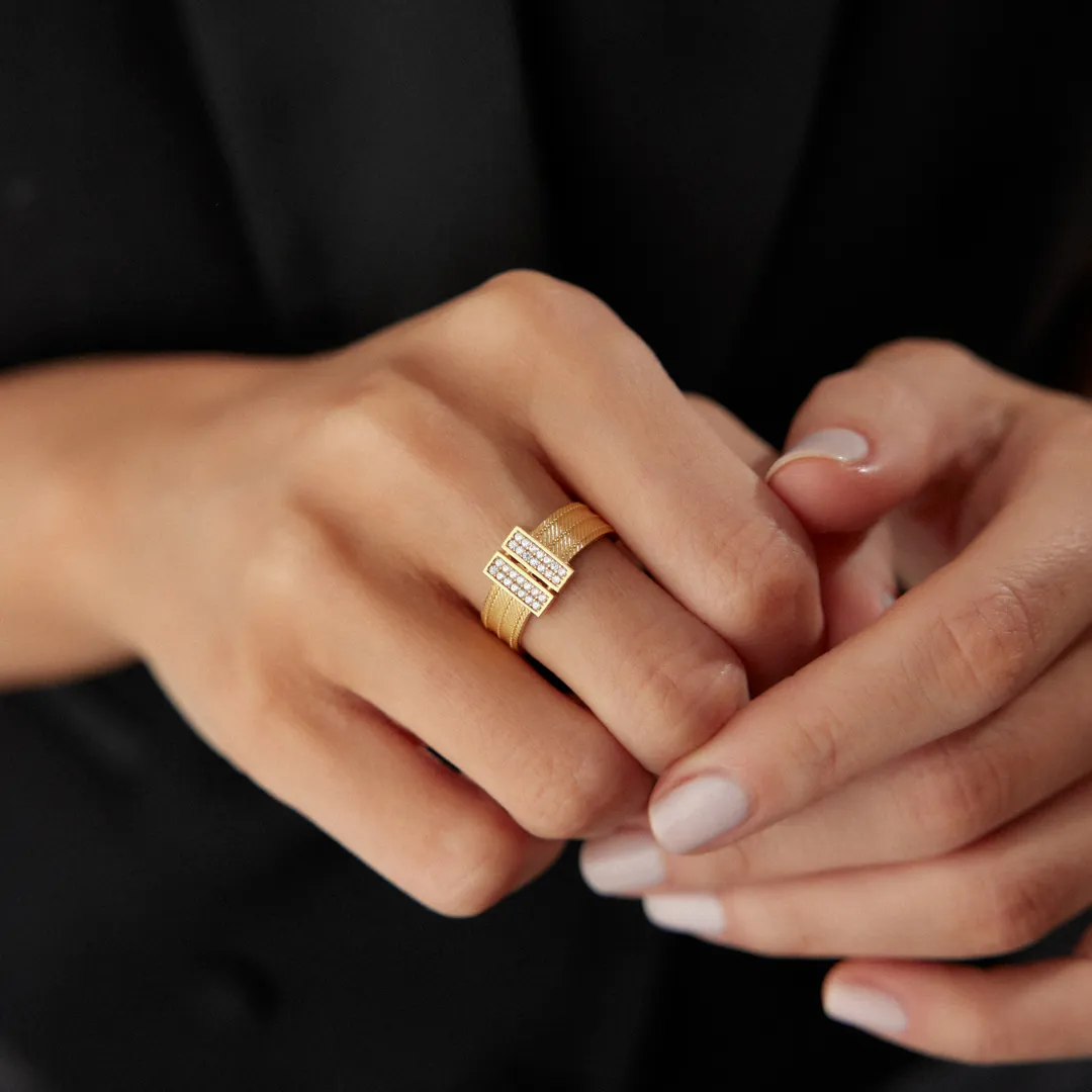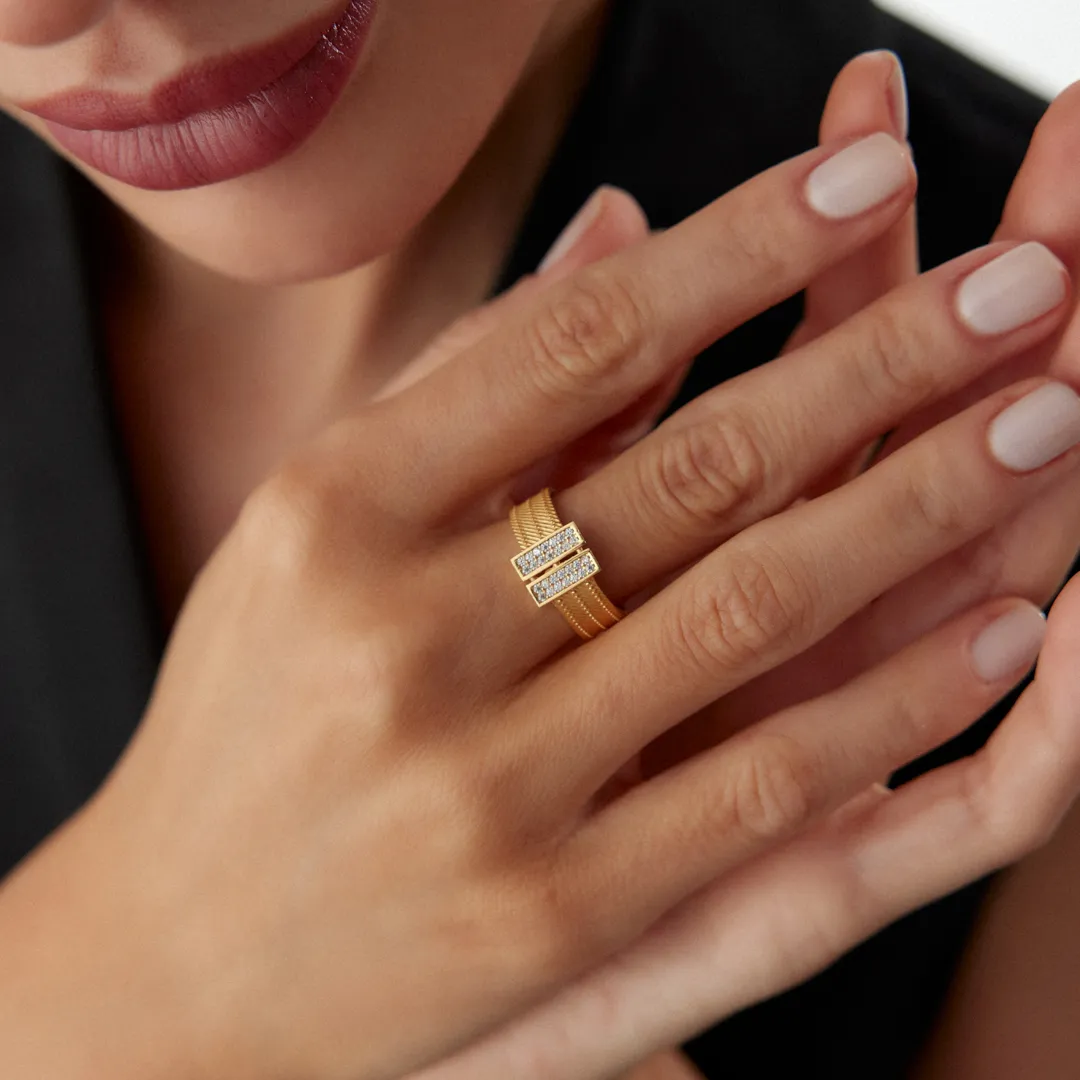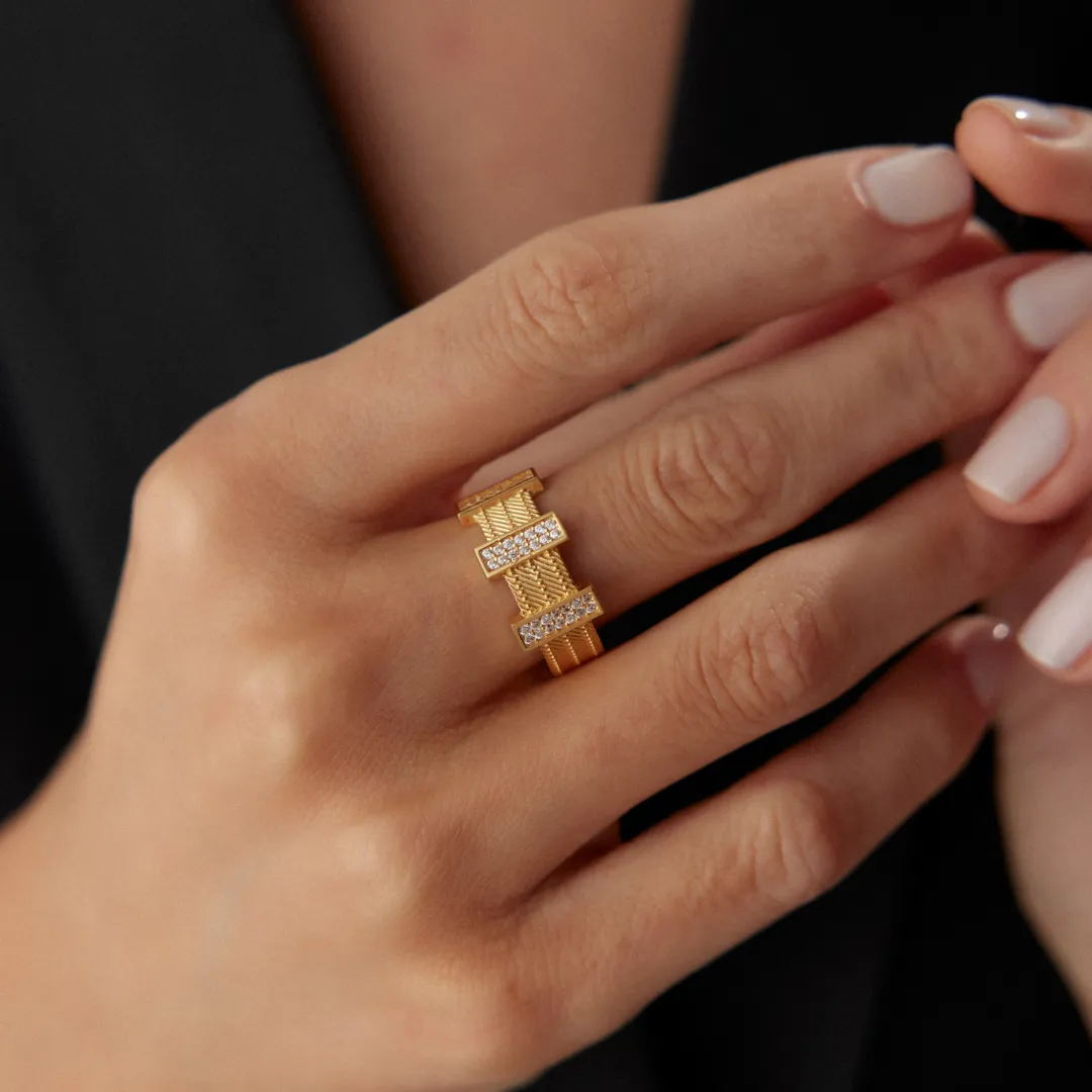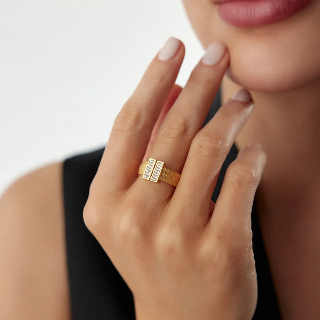 Geometrik Tasarım Taşlı Kalze Yüzük