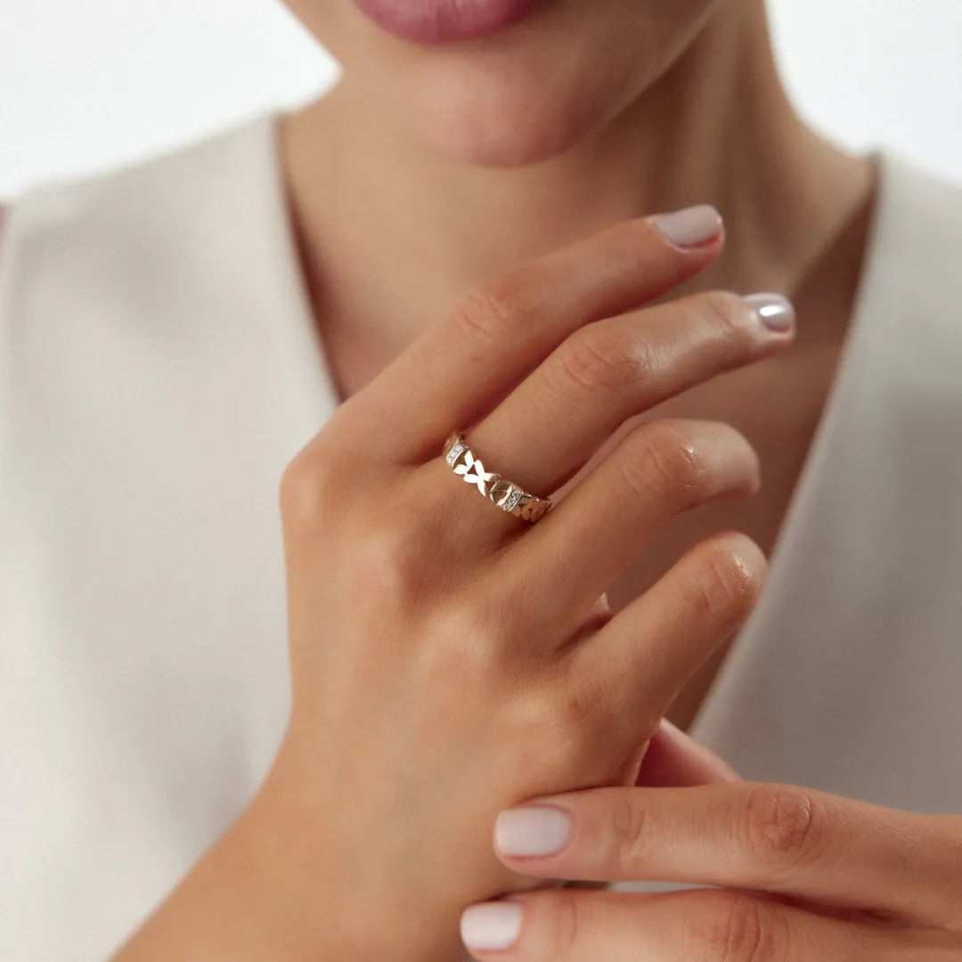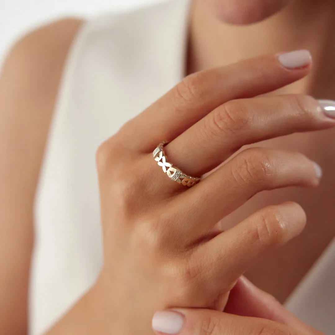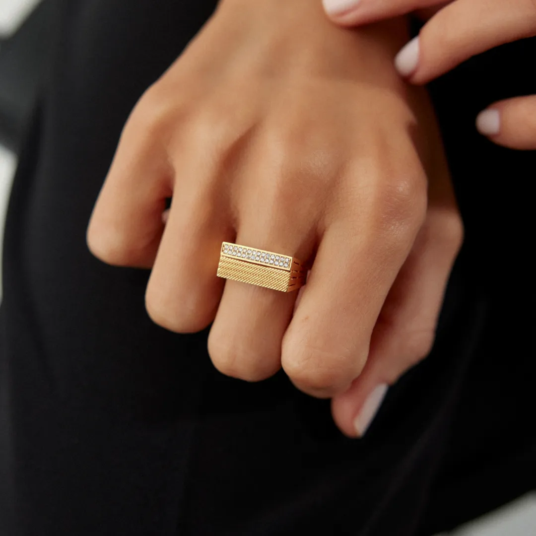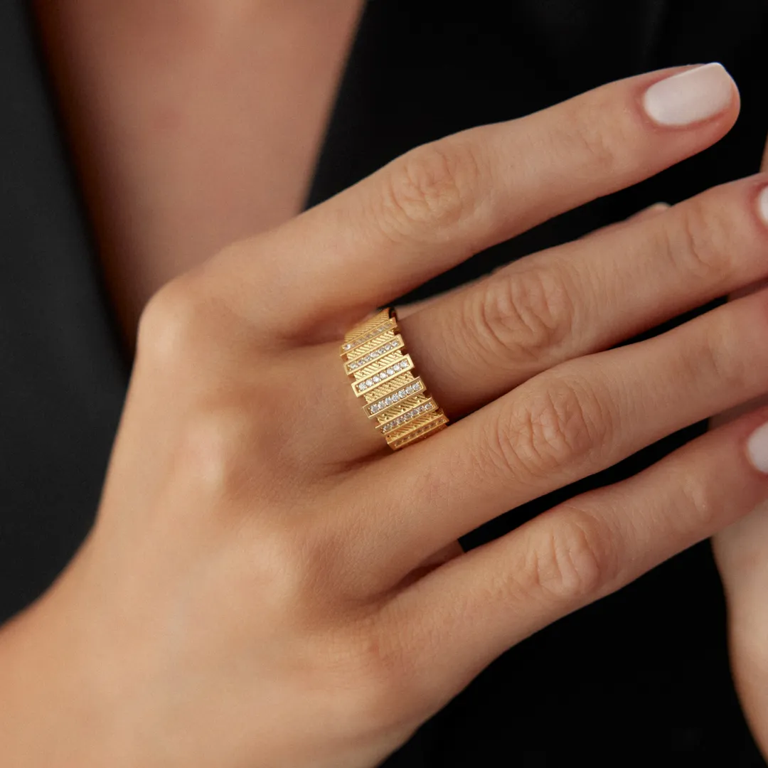 Geometrik Tasarım Taşlı Kalze Yüzük