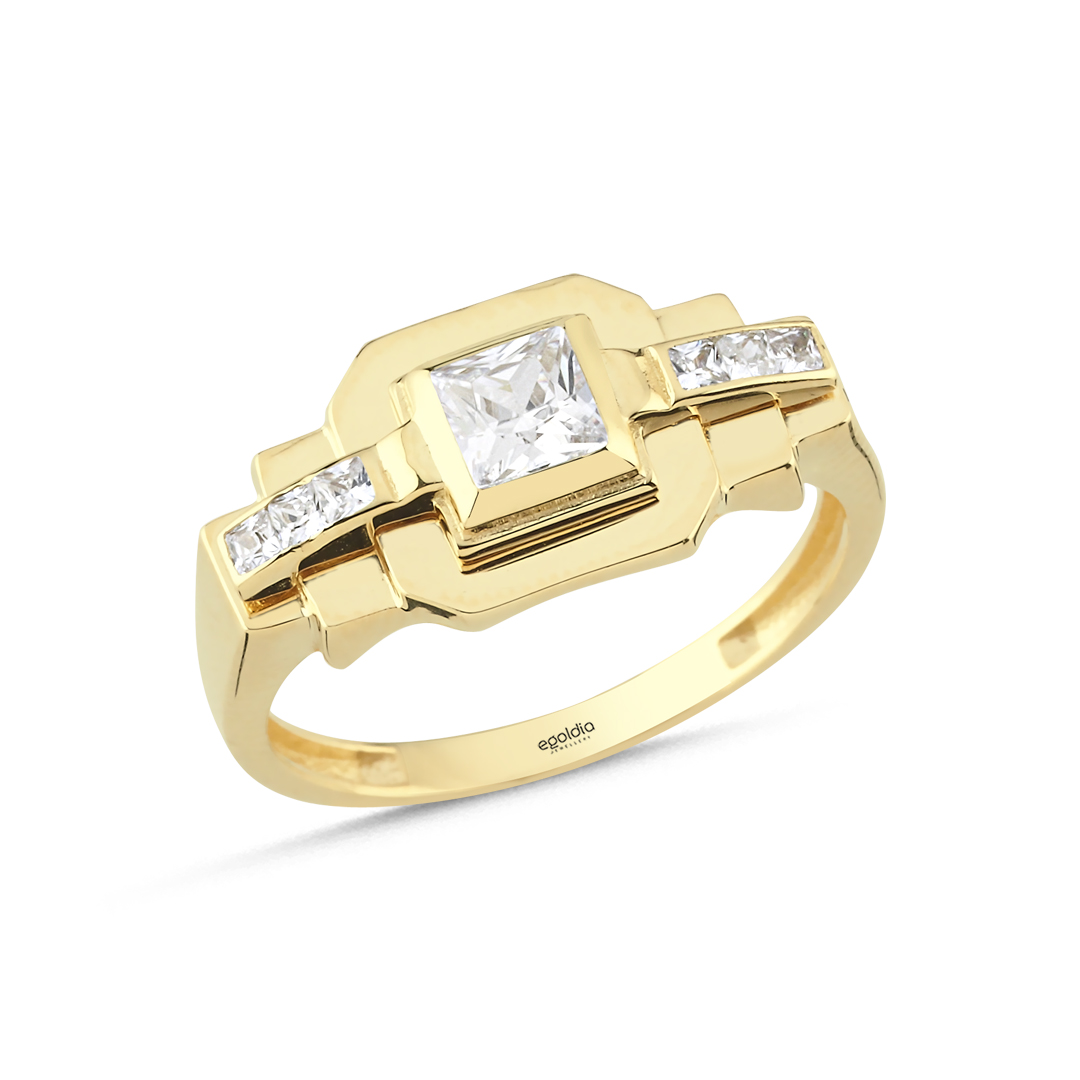 Kare Geometrik Tasarım Taşlı Yüzük