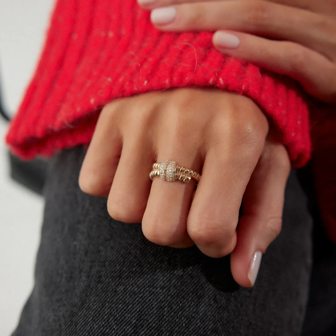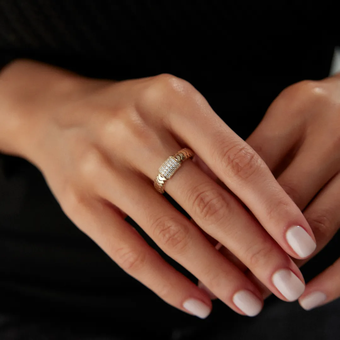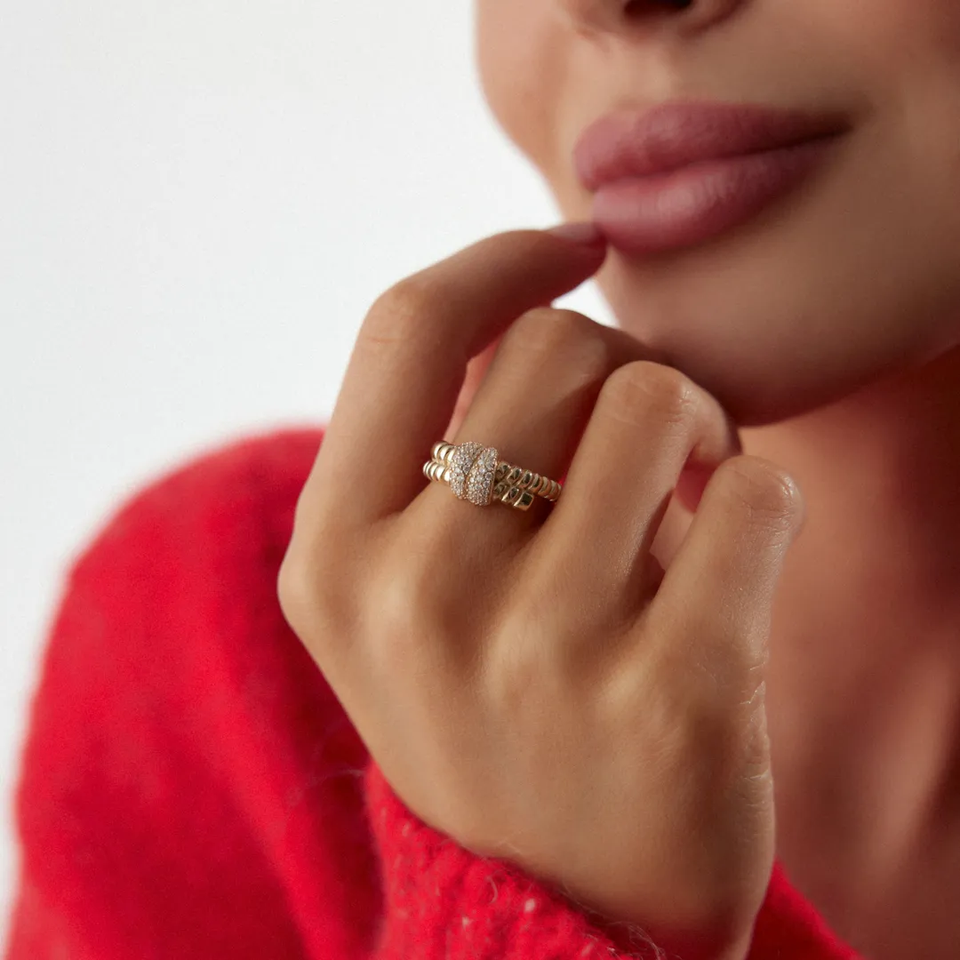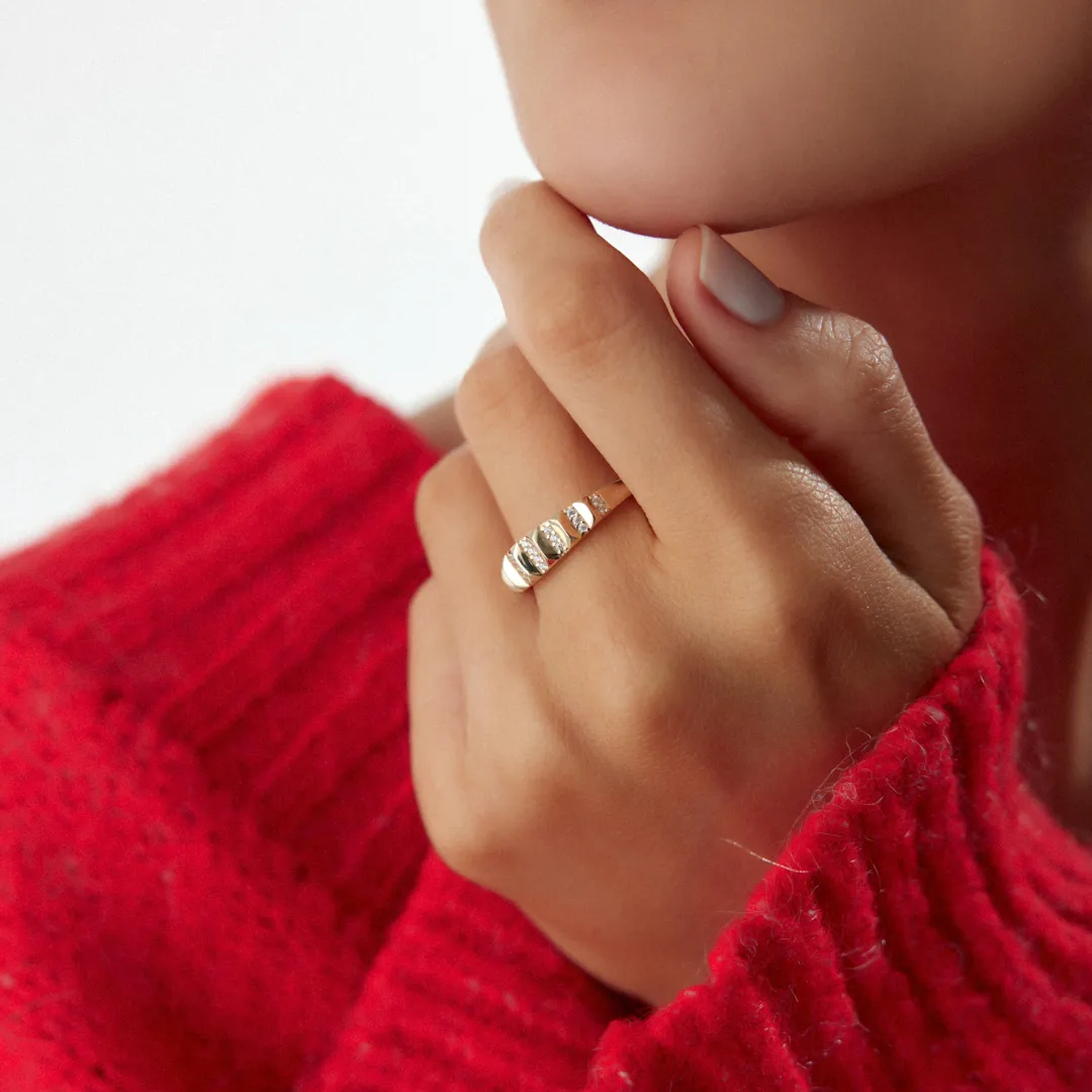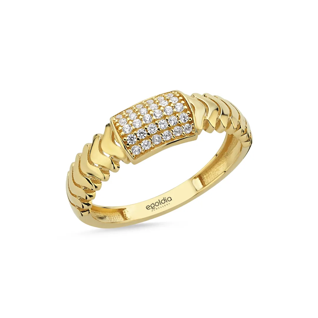 Balıksırtı Desenli Taşlı Yüzük