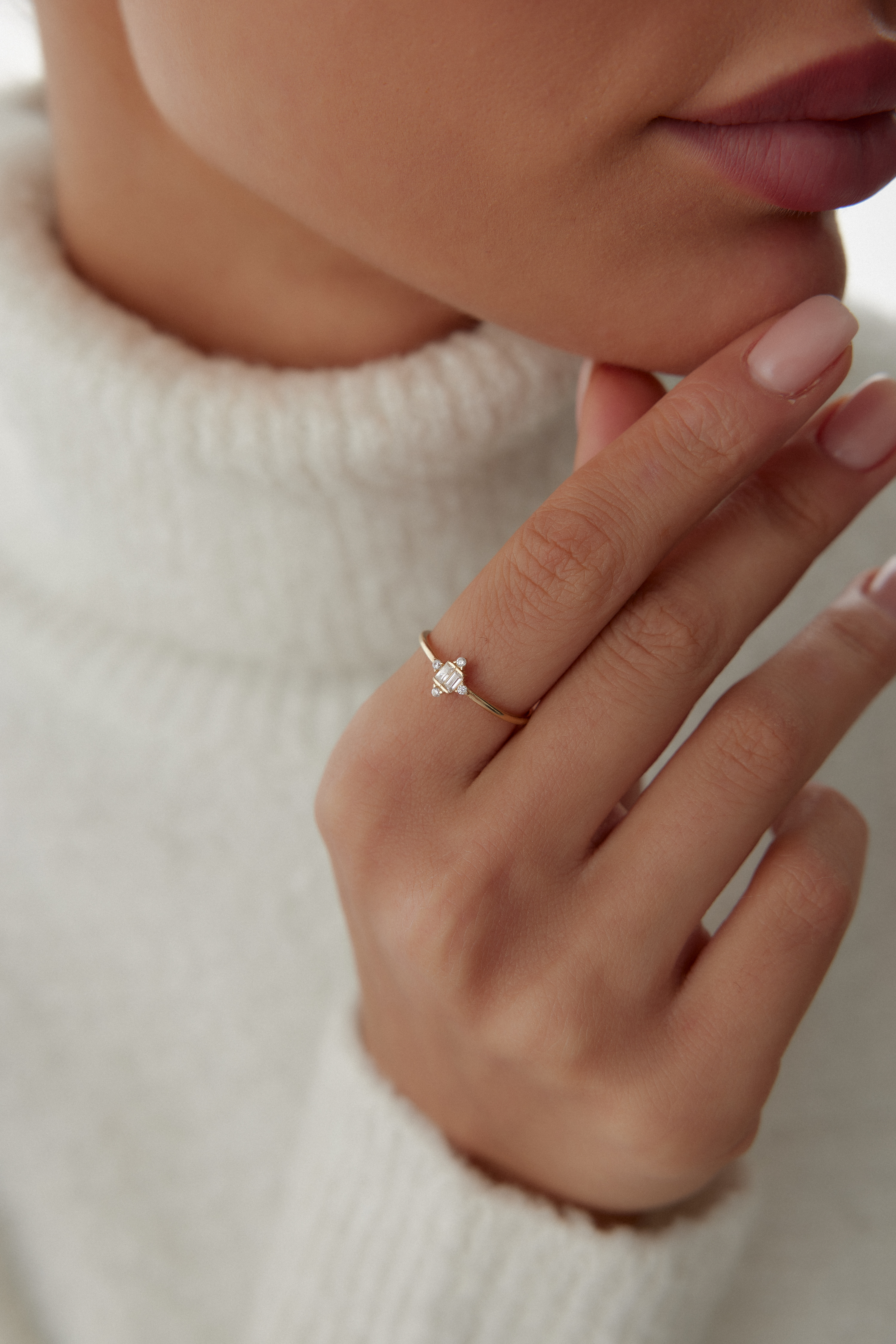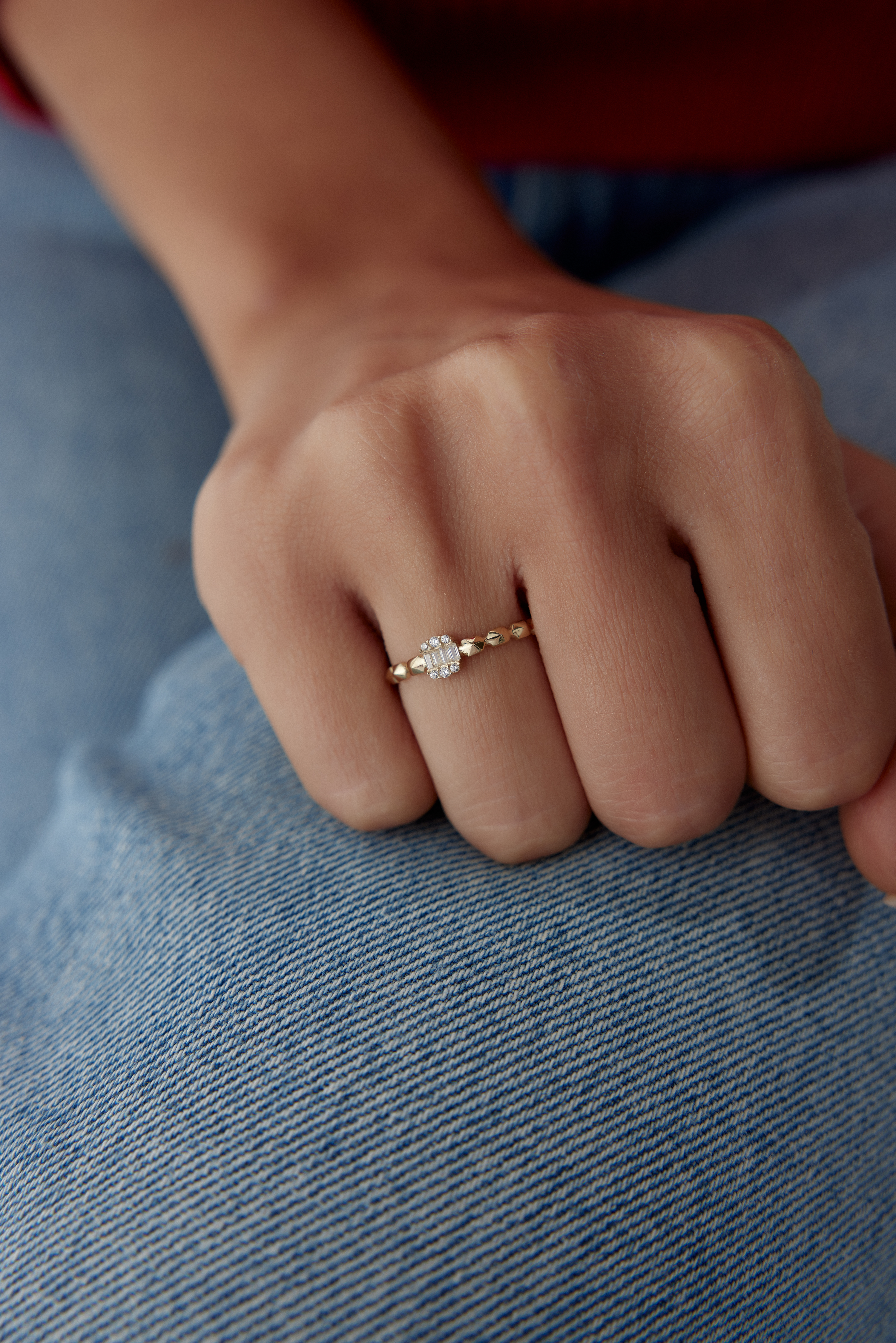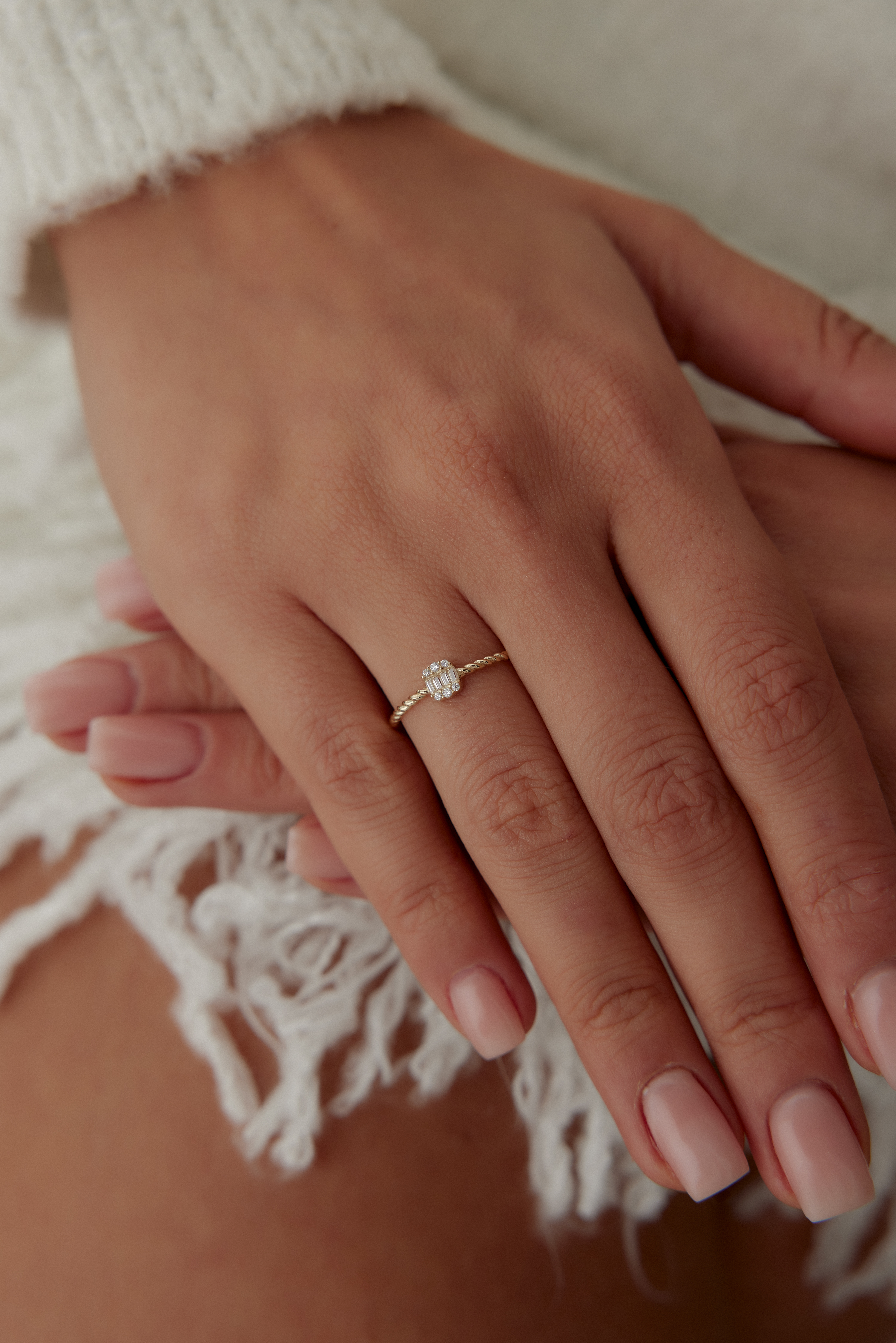 Baget Yuvarlak Tasarım Taşlı Yüzük