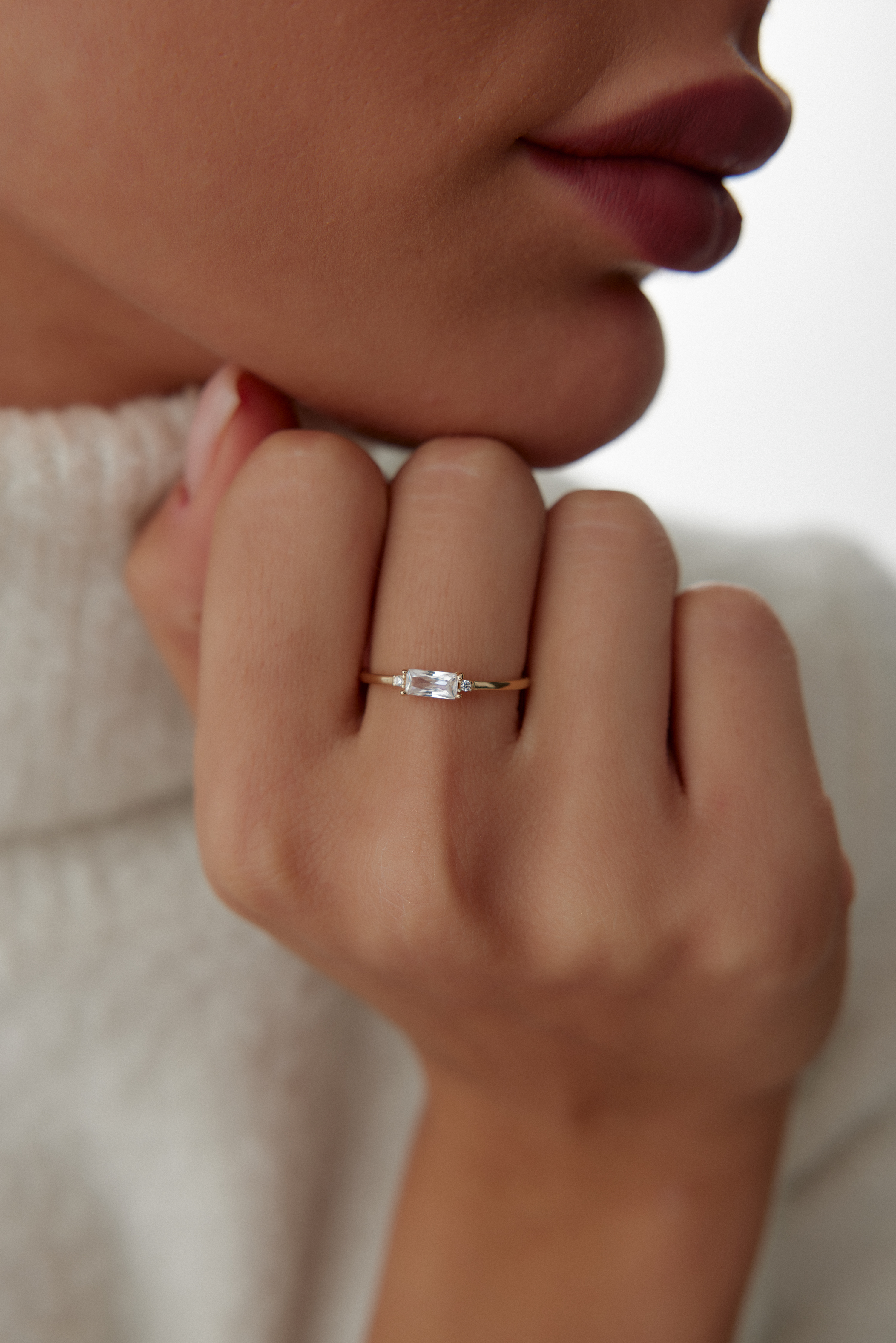 Sekizgen Beyaz Pembe Taşlı Yüzük