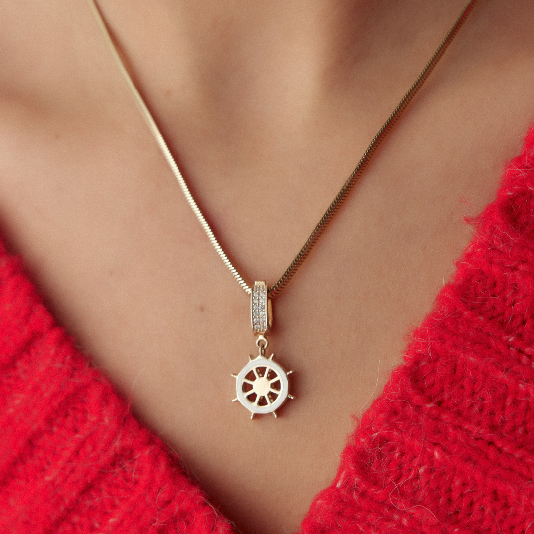 Mini Boy Pusula Taşlı Charm Kolye Ucu