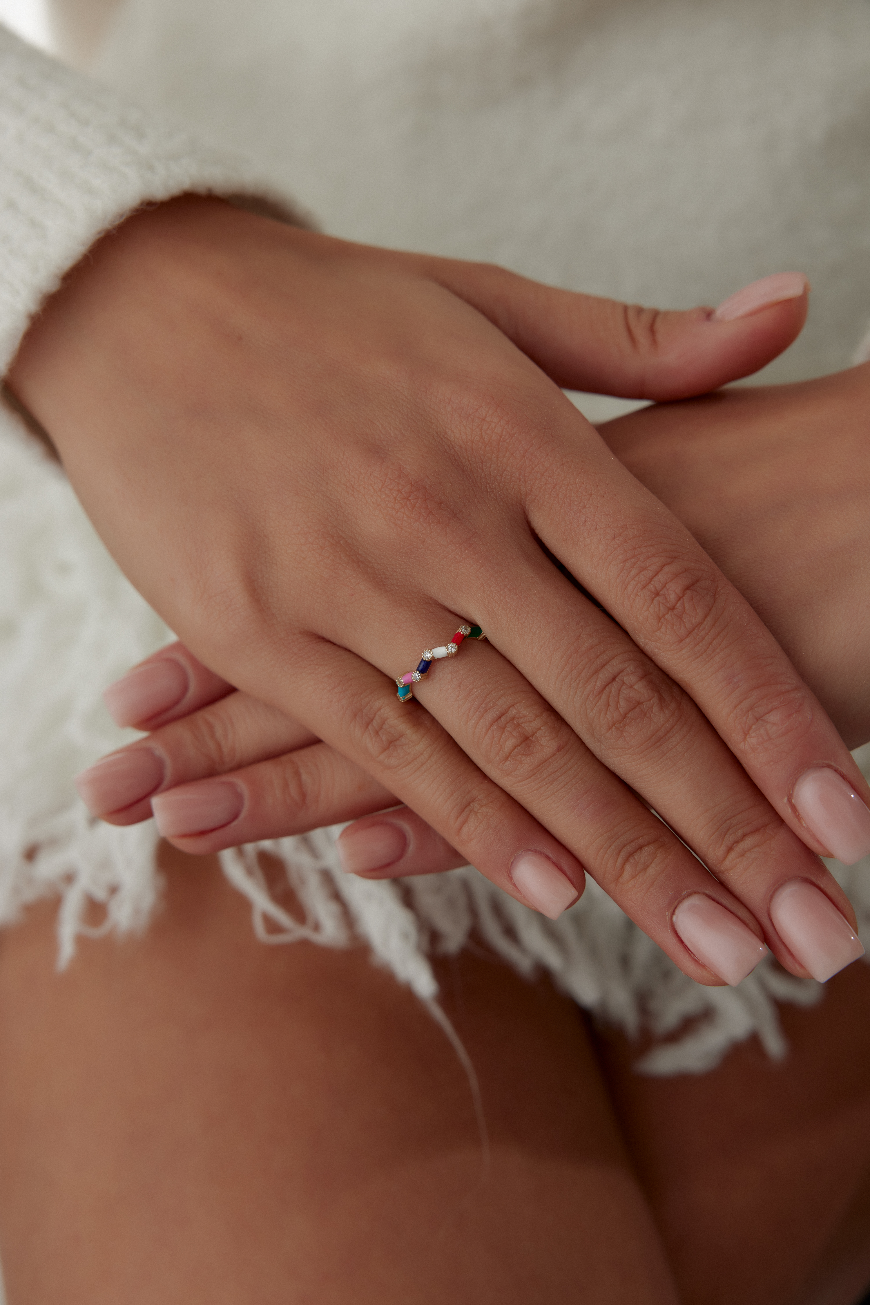 Renkli Çubuk Nokta Taşlı Tasarım Yüzük