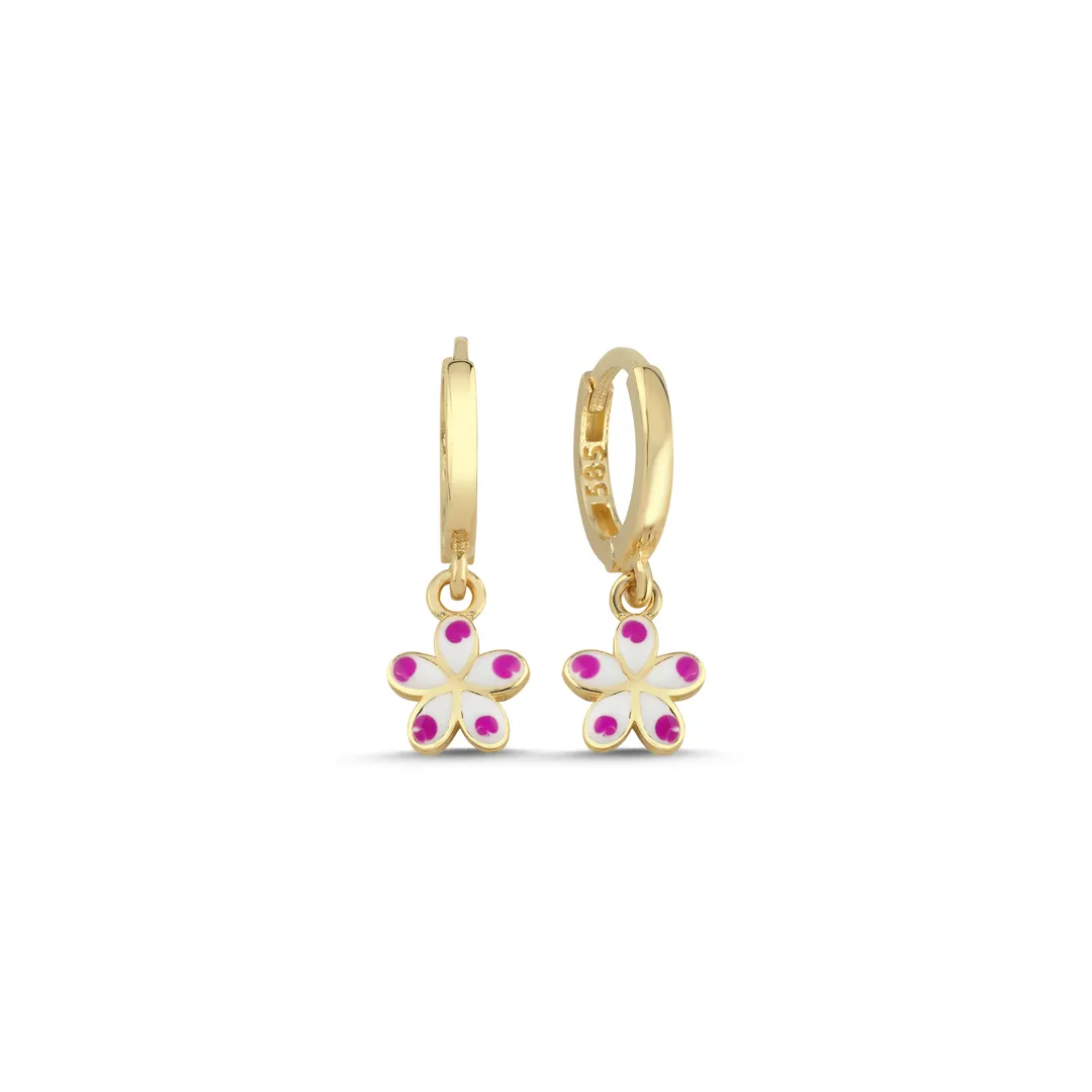 Papatya Beyaz Mor Mineli Çocuk Küpe