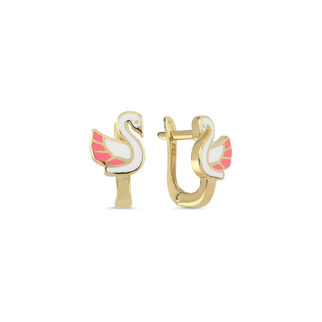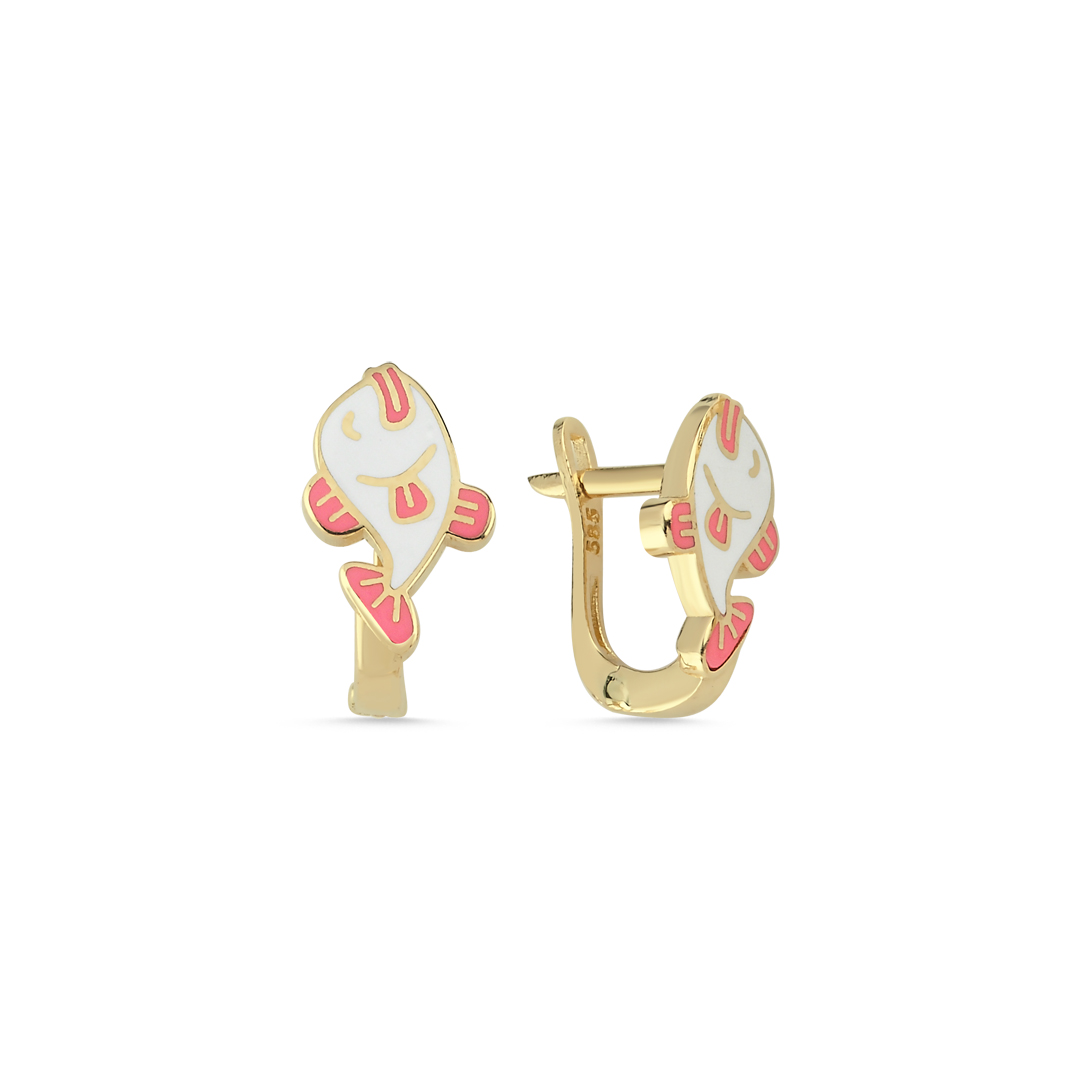 Kalp Beyaz Pembe Mineli Çocuk Küpe