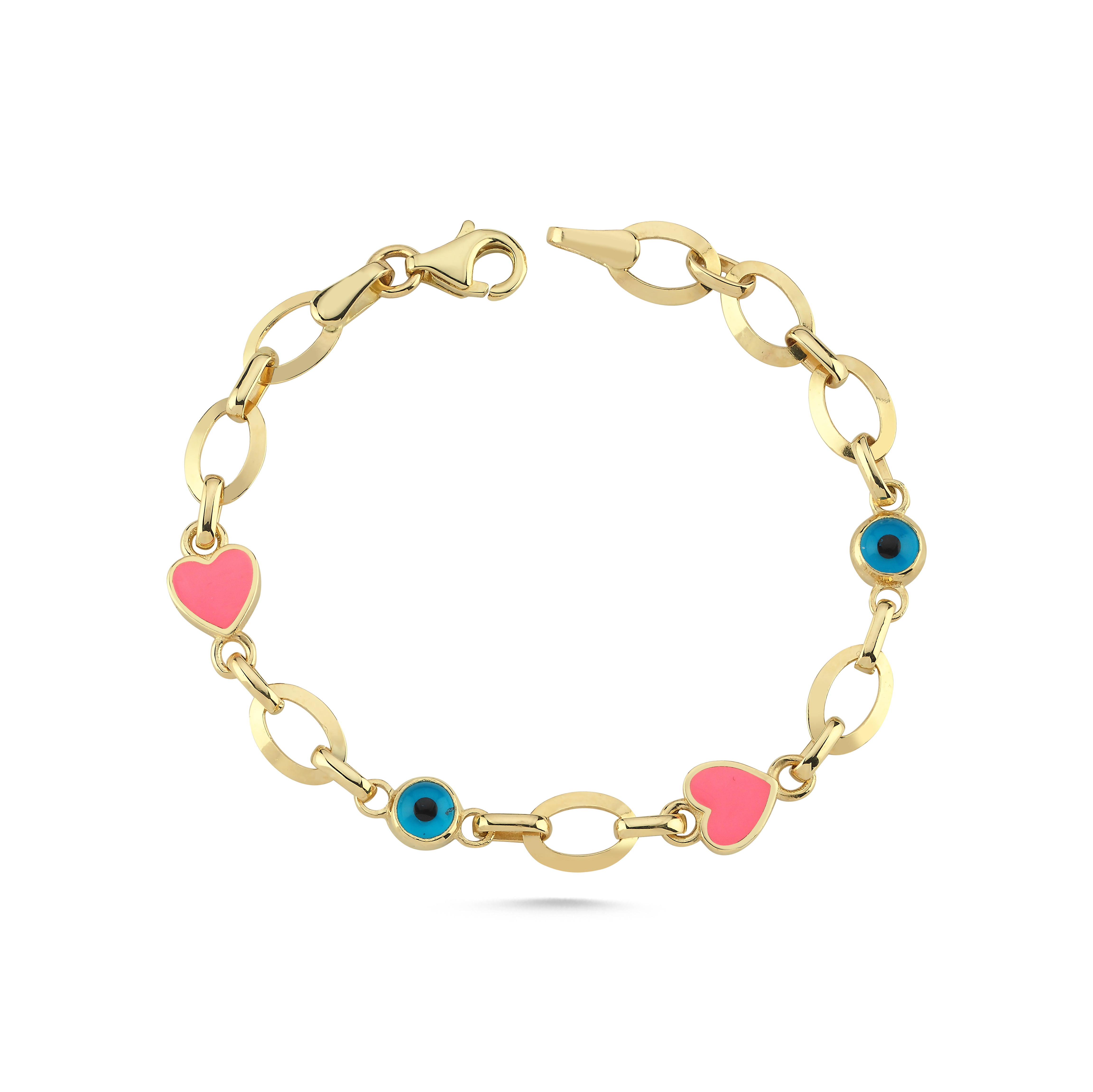 Nazar Boncuklu Pembe Kalpli Çocuk Bileklik