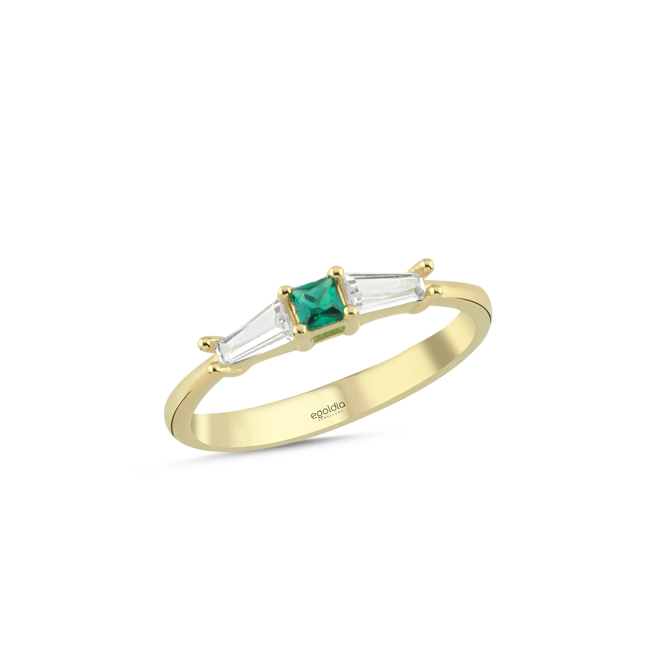 Kare Tasarım Baget Renkli Taşlı Yüzük