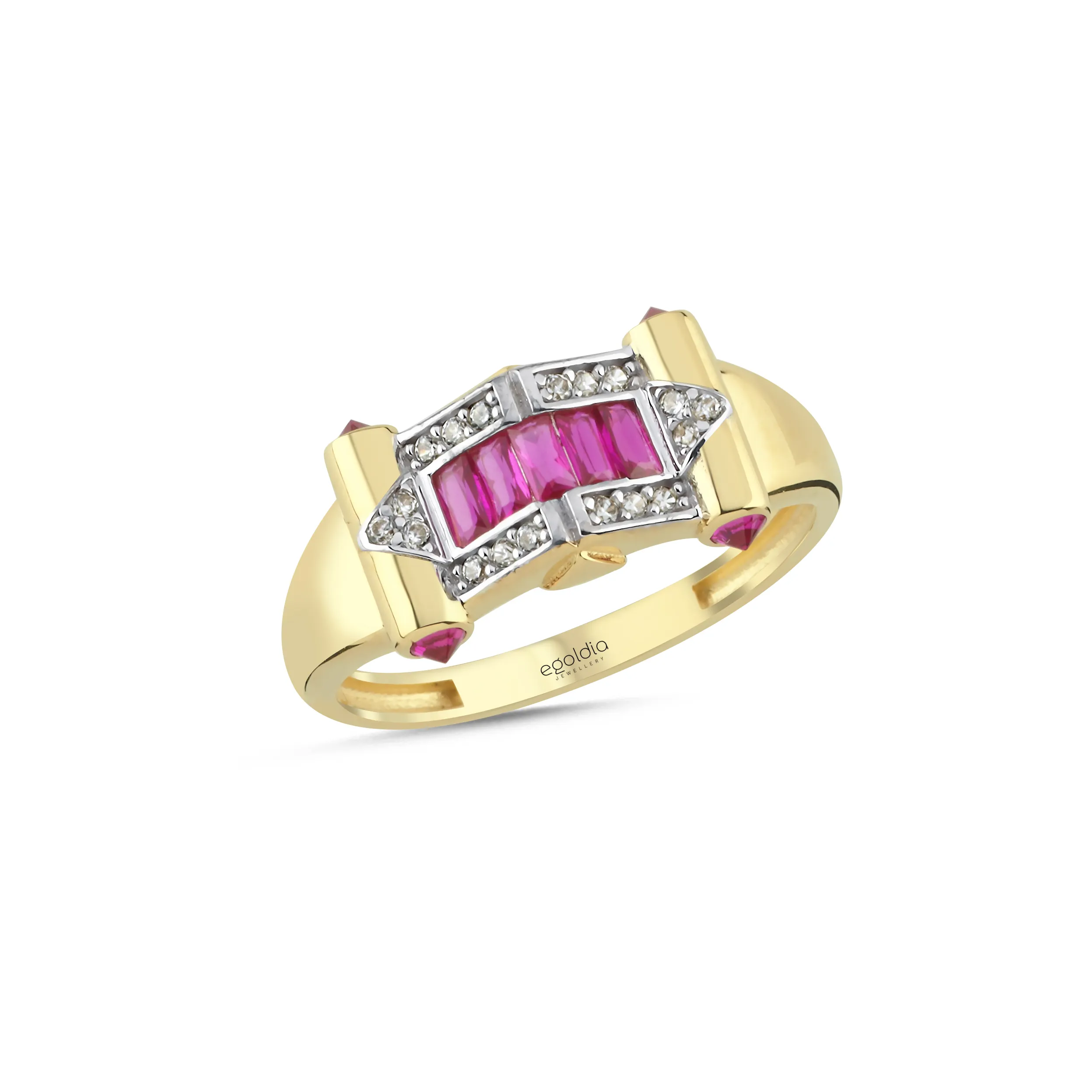 Üçgen Prizma Tasarım Beyaz Ve Baget Taşlı Yüzük