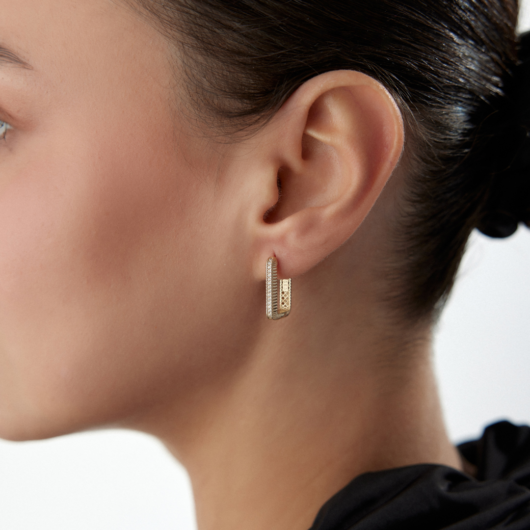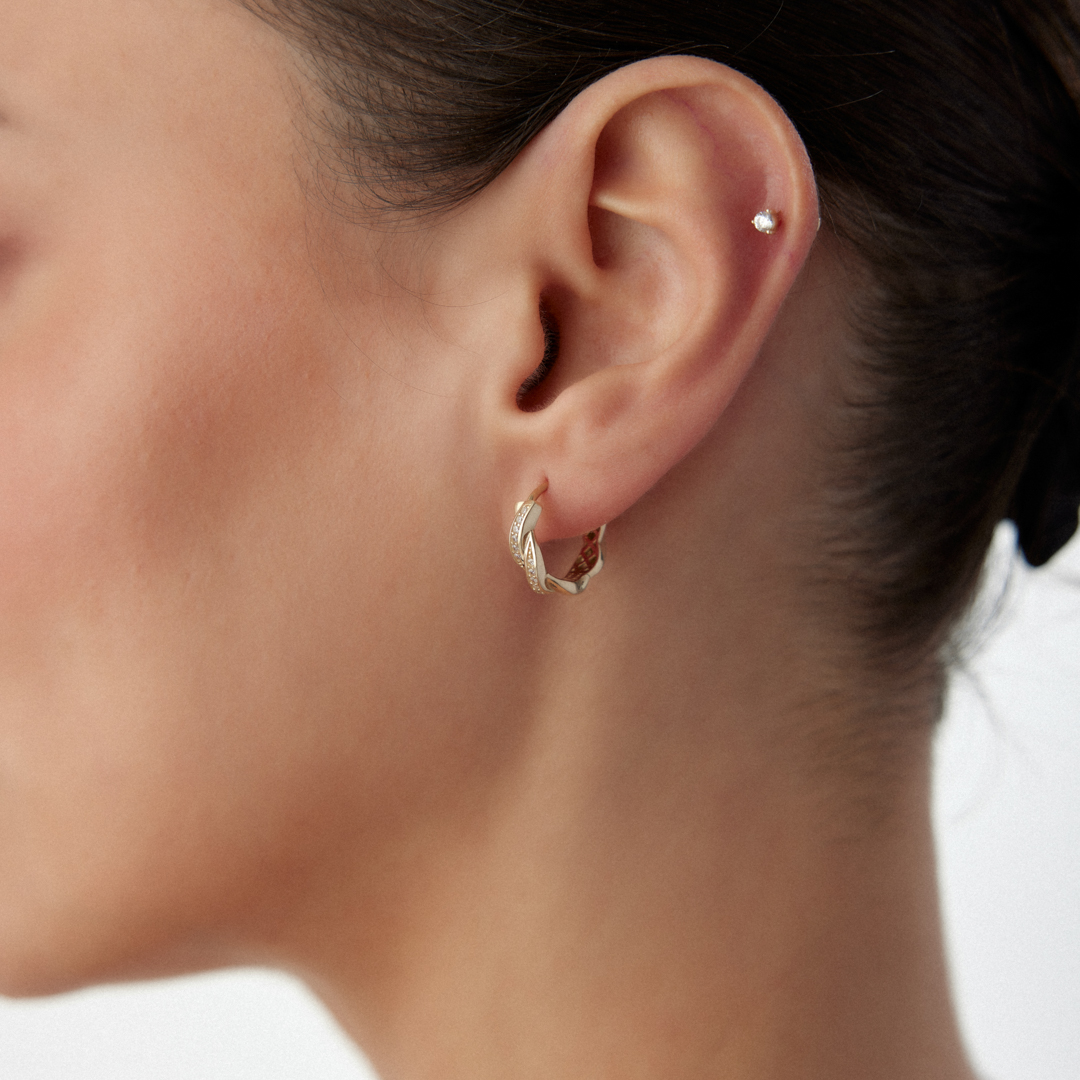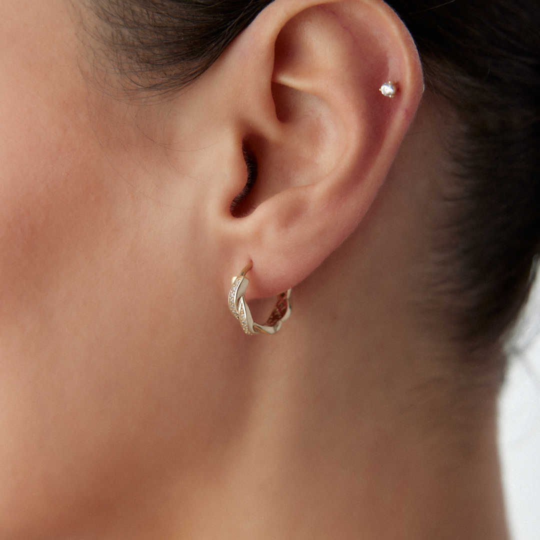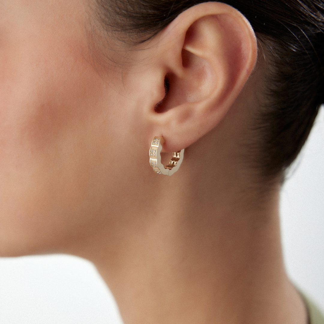 Boğumlu Halka Taşlı Küpe