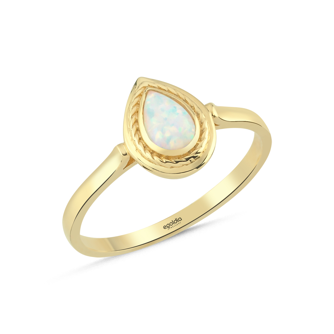 Sedef Firuze Yeşil Pembe Damla Taşlı Yüzük