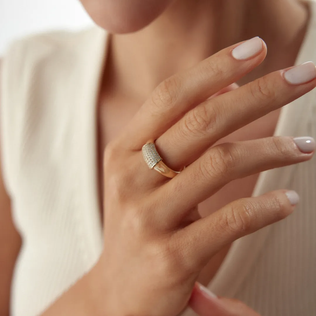 Balıksırtı Desenli Taşlı Yüzük